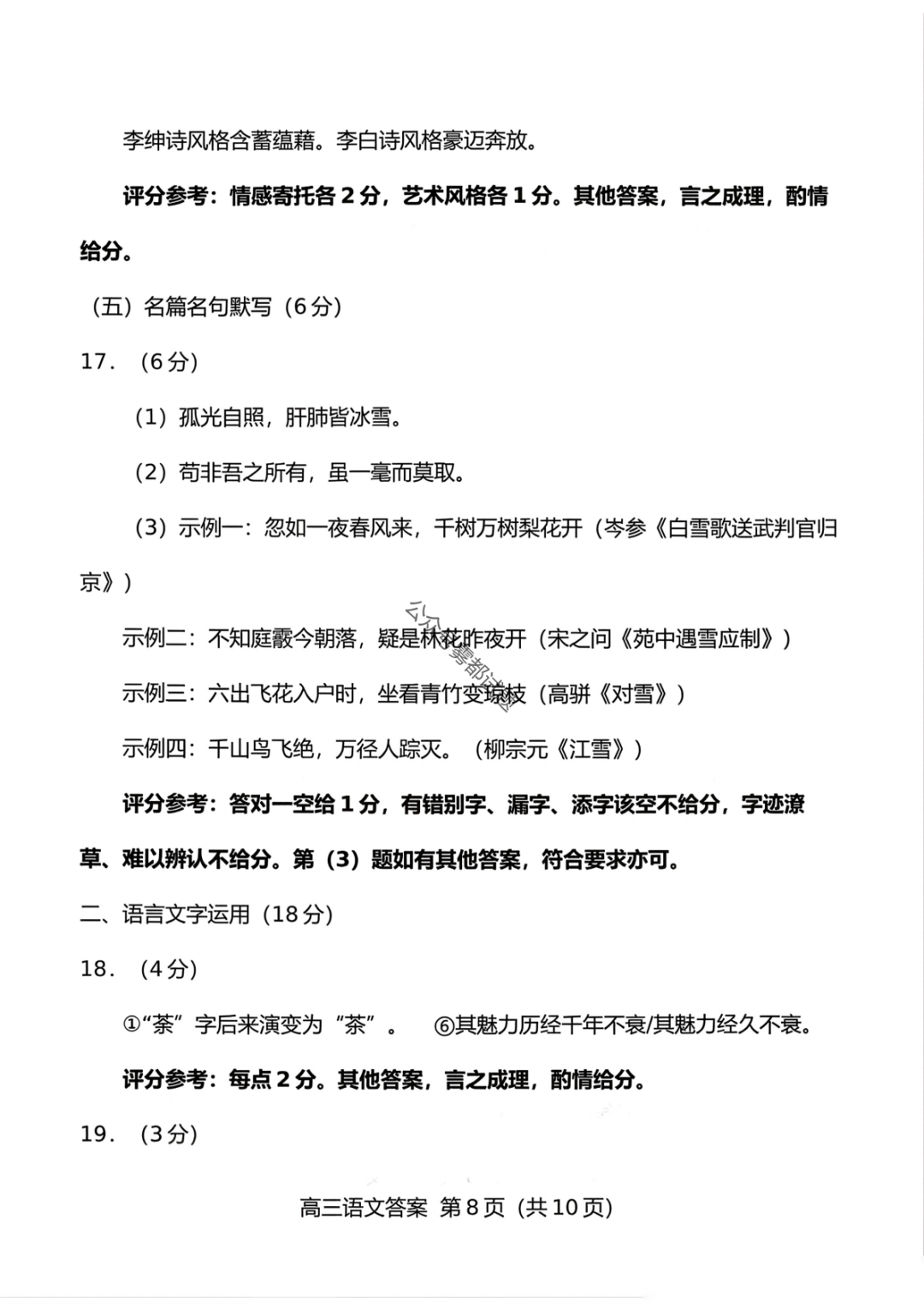 济南市高三3月开学学情调研测试答案 济南市高三3月开学学情调研测试答案