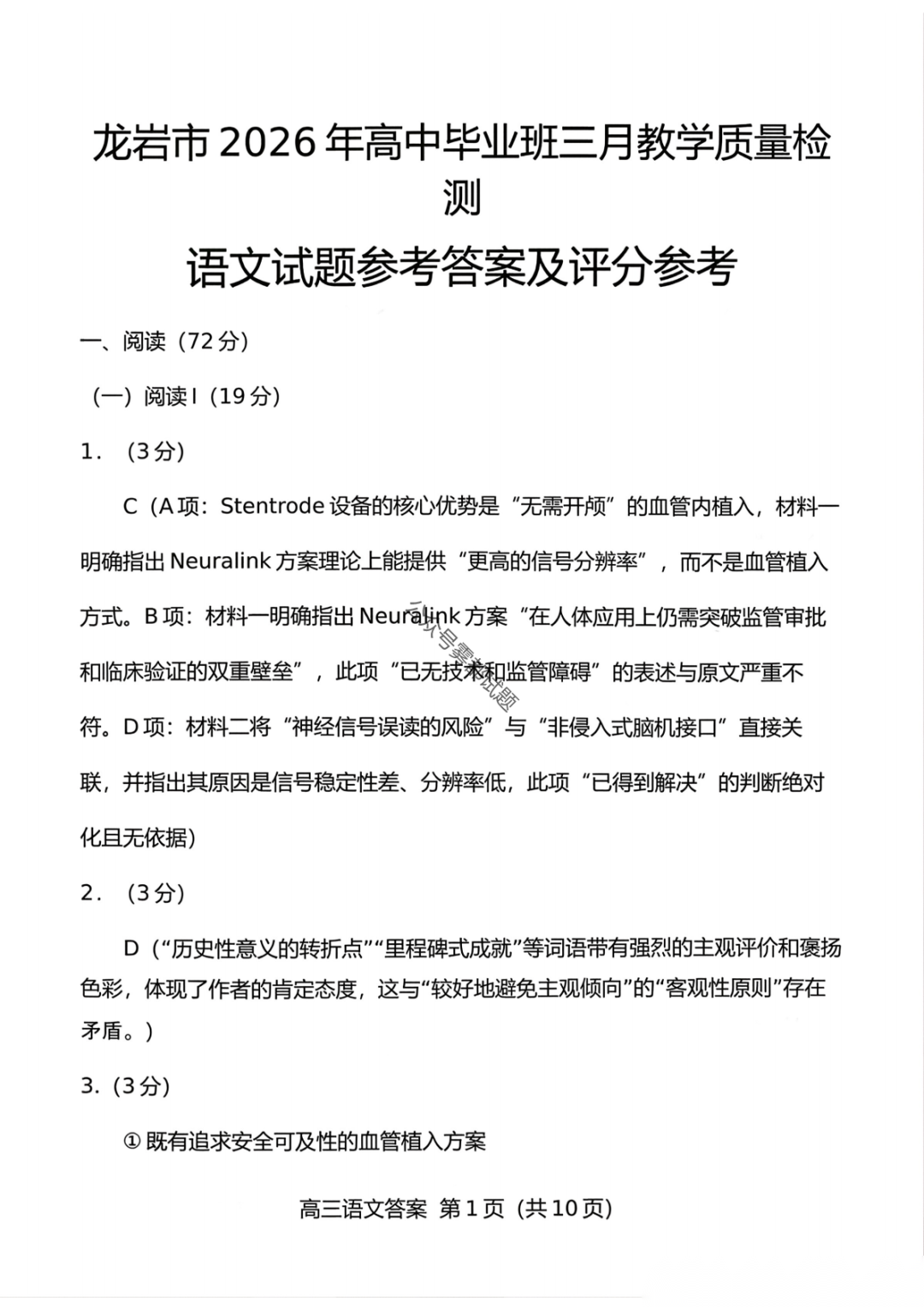 龙岩市2026年高三三月教学质量检测 龙岩市2026年高三三月教学质量检测