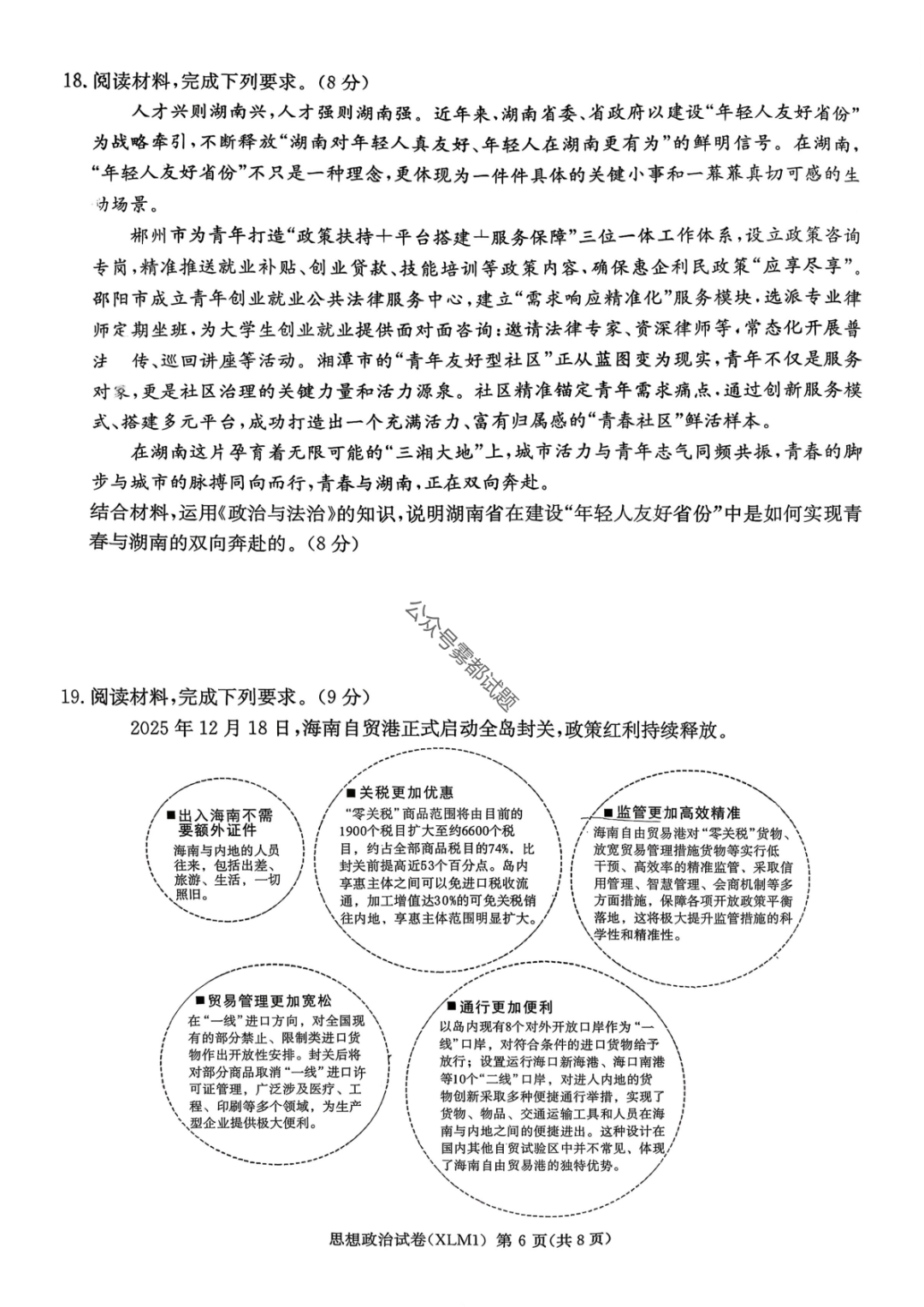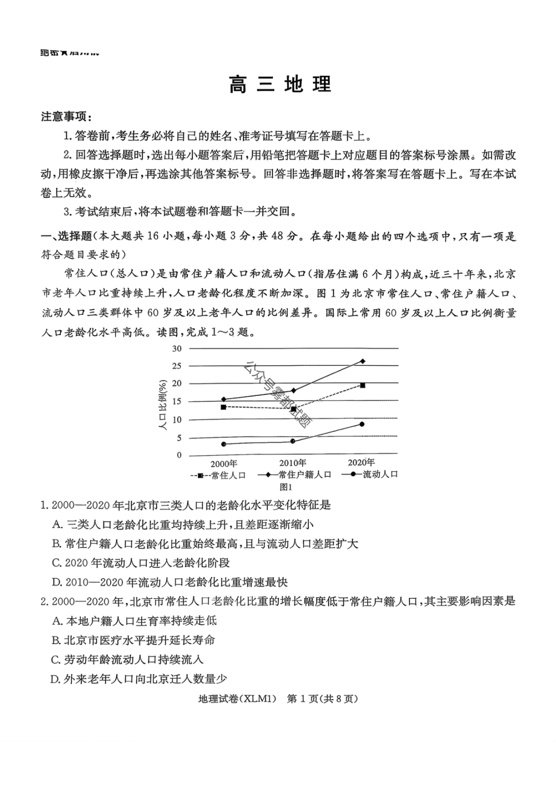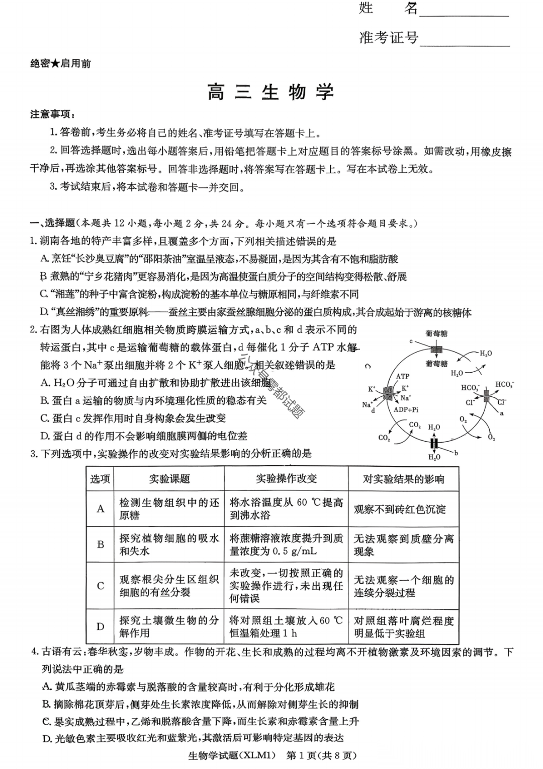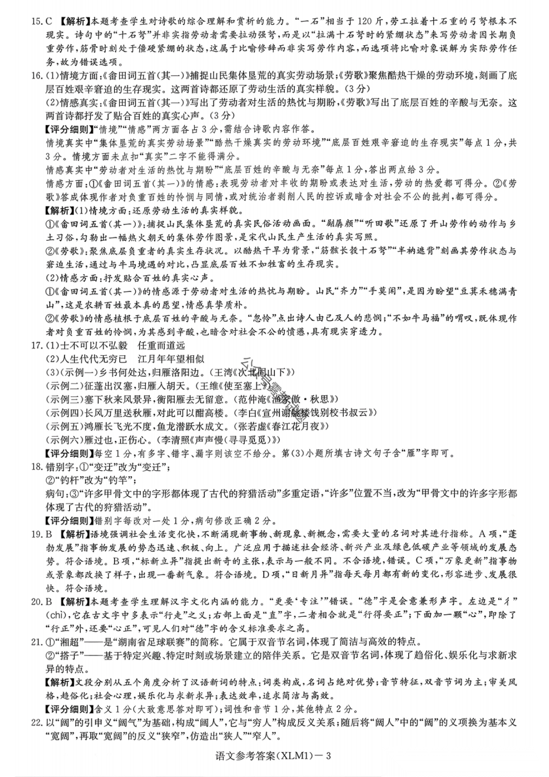 湖南新高考教学教研联盟暨长郡二十校联盟高三3月联考第一天科目