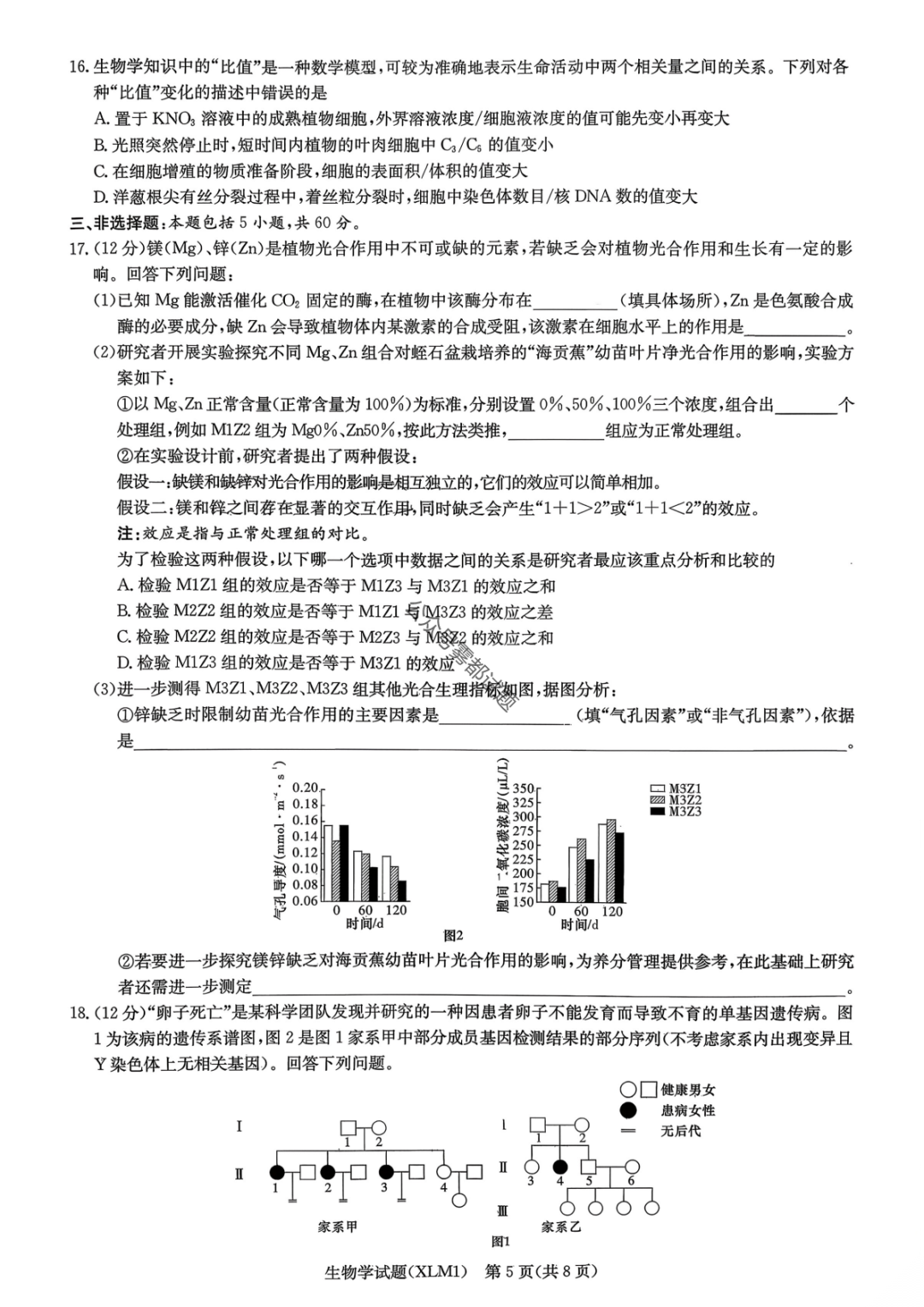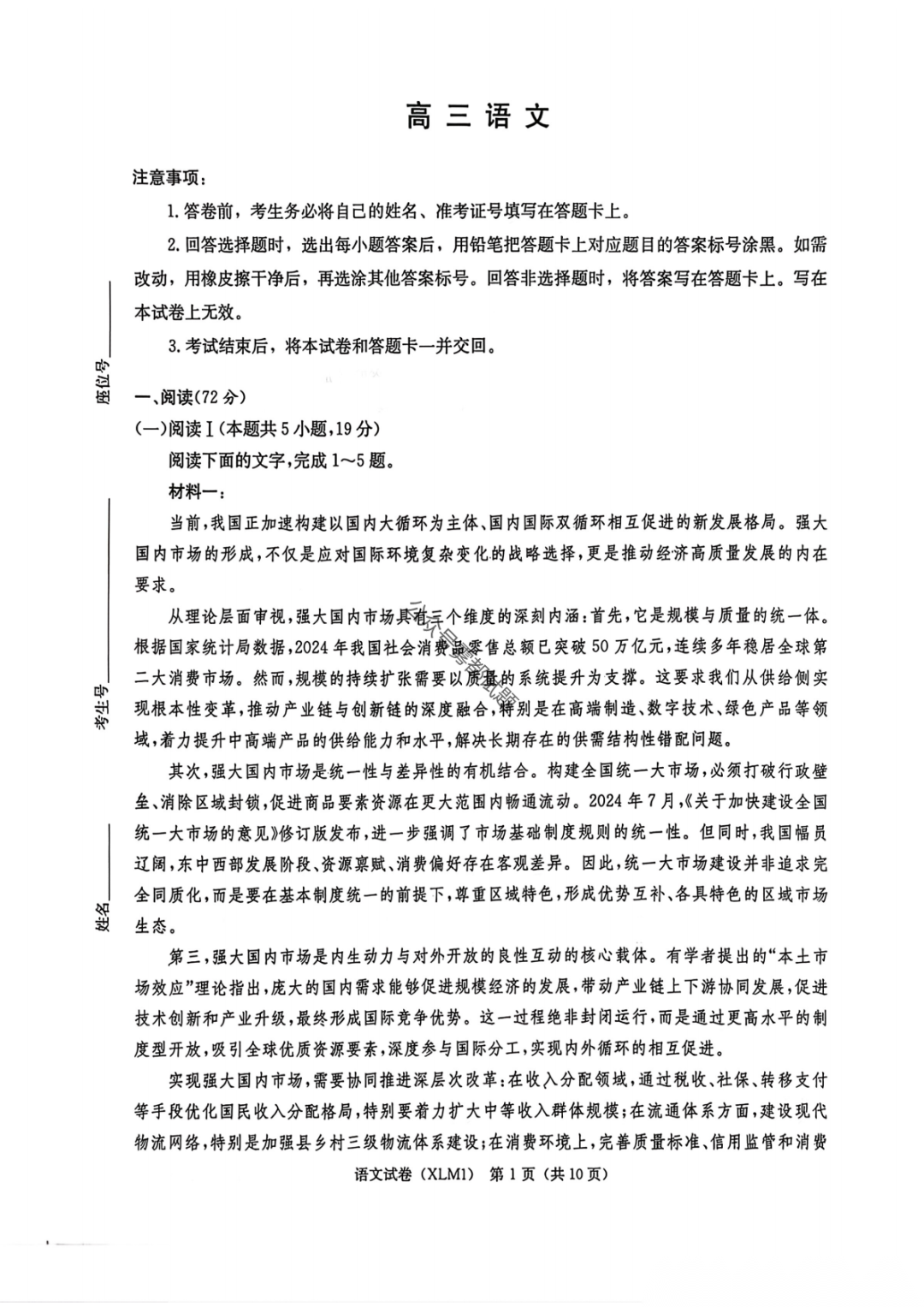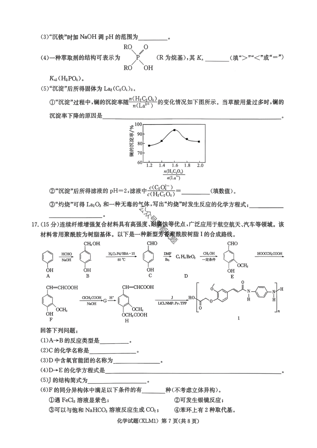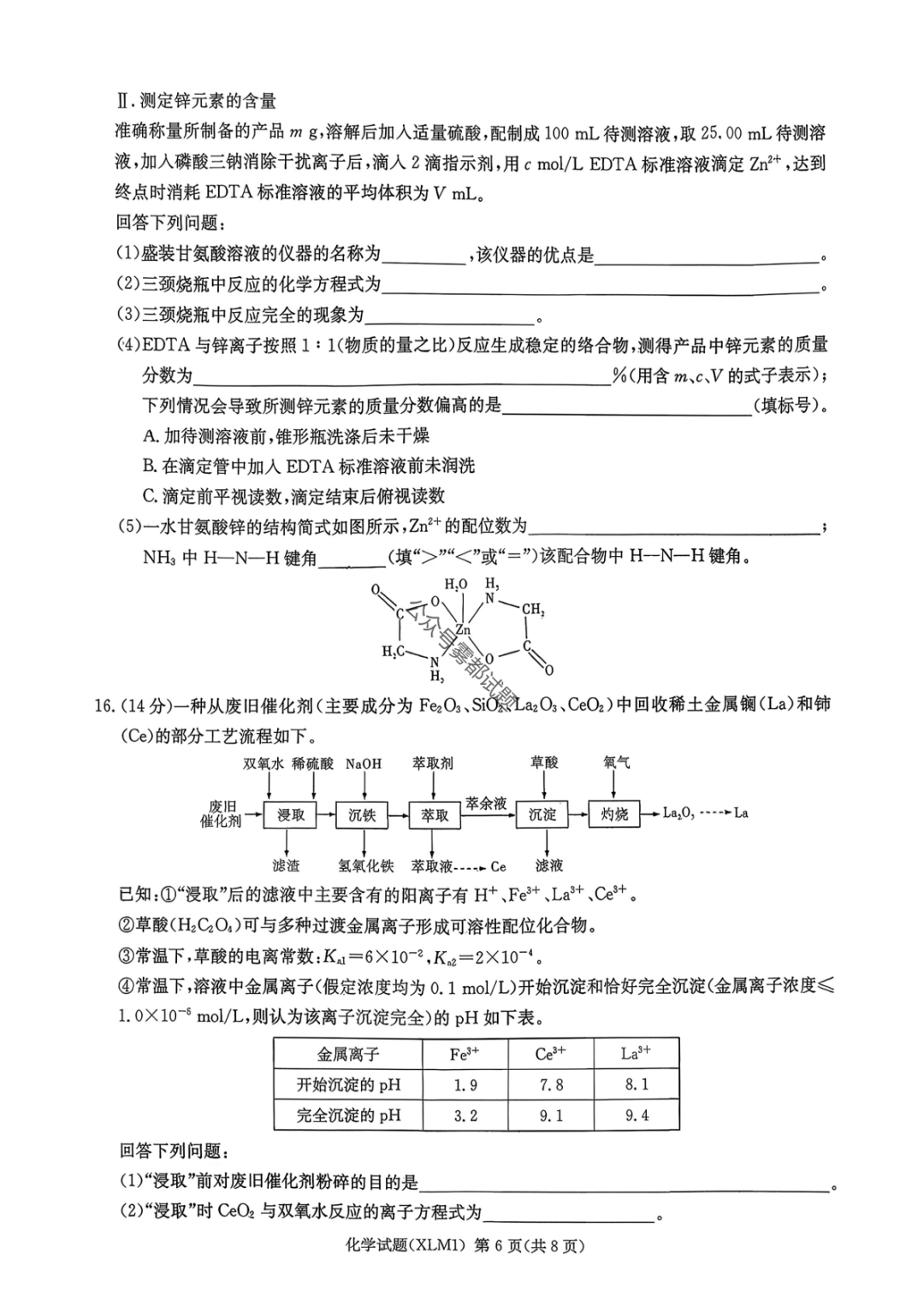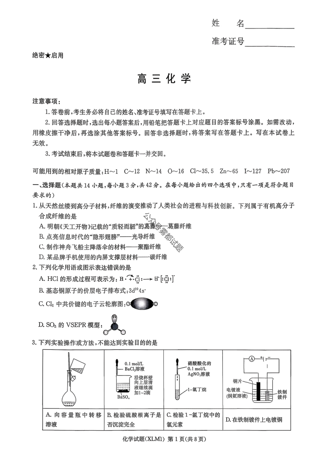 湖南新高考教学教研联盟暨长郡二十校联盟高三3月联考第一天科目