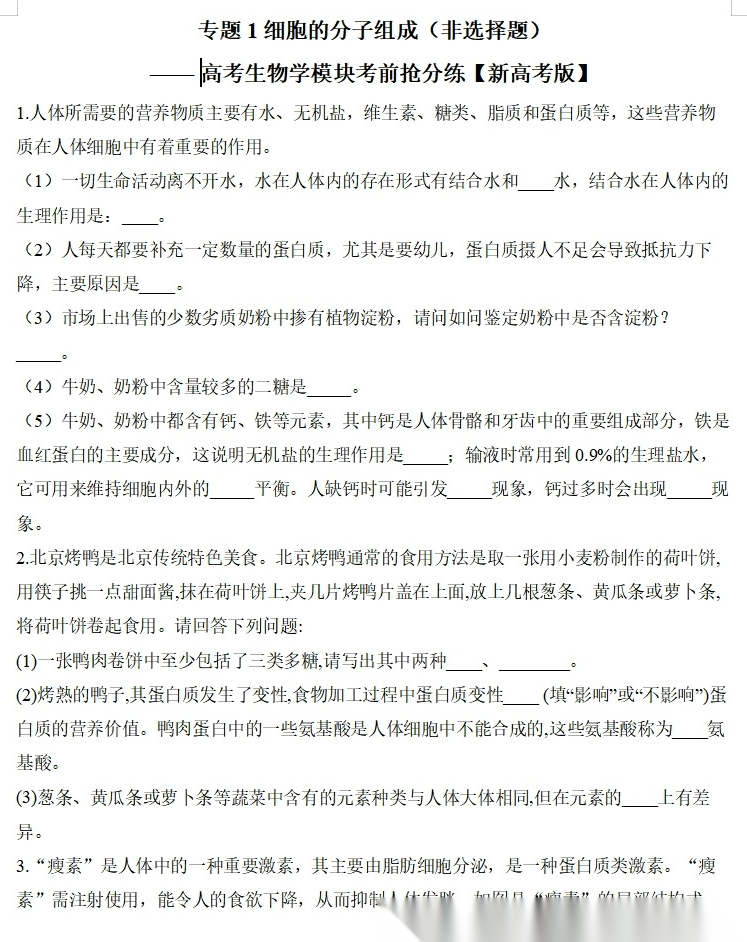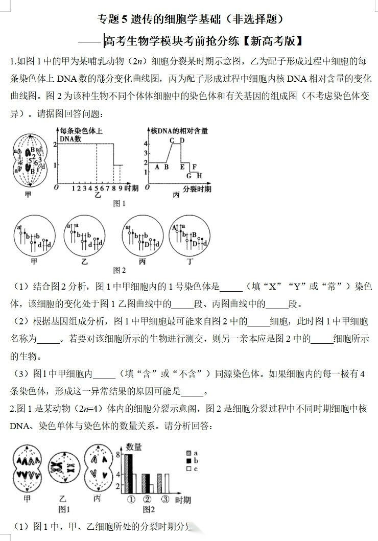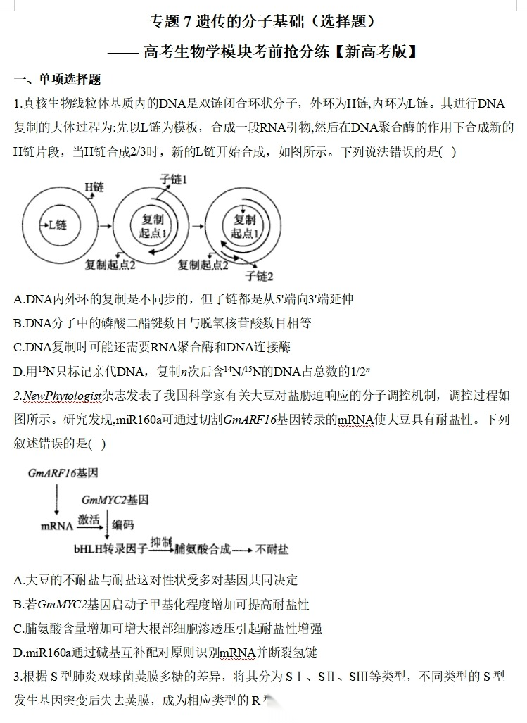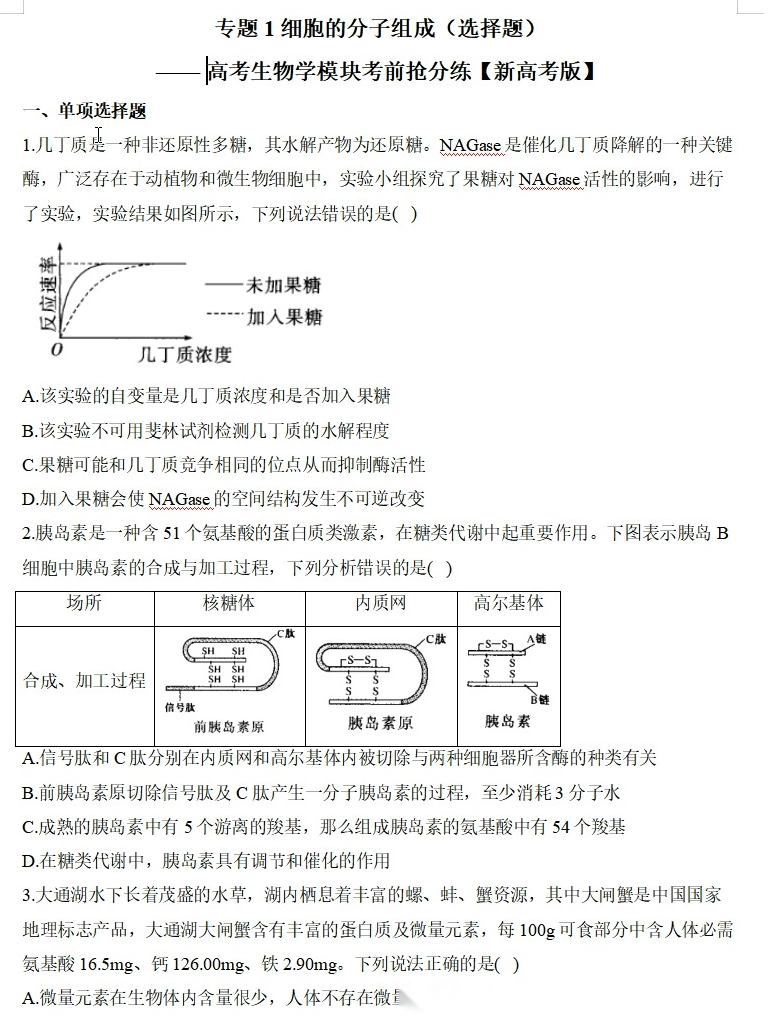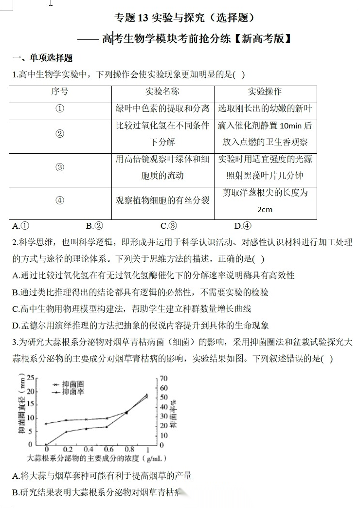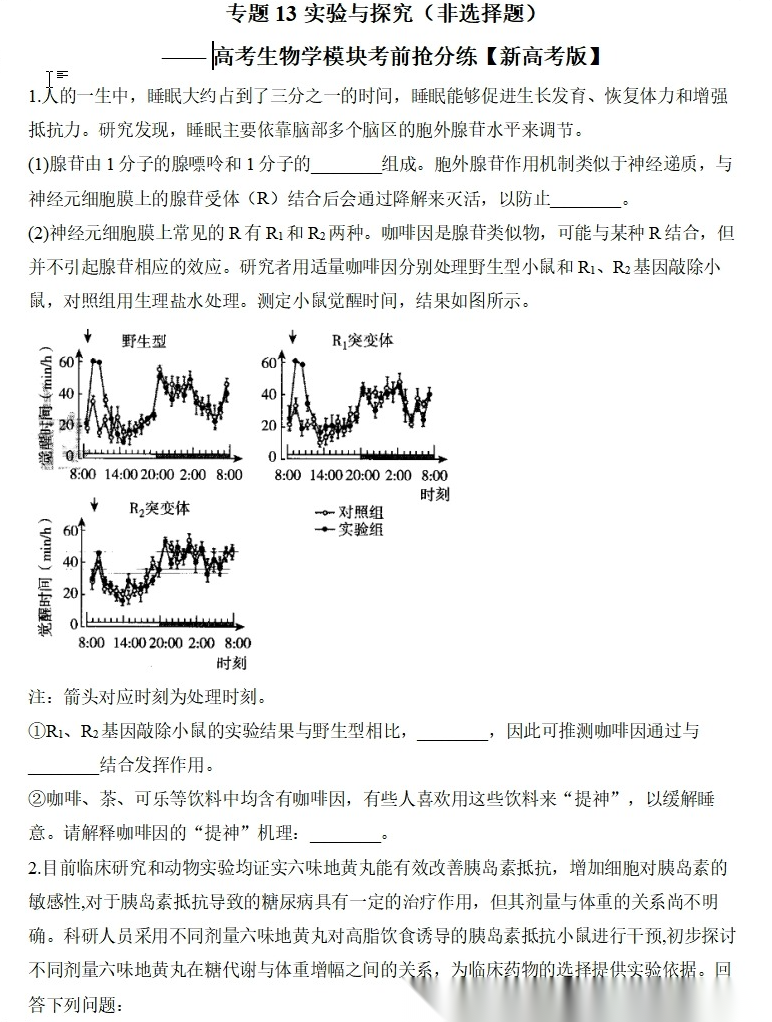 【高考生物】【二三轮专练】【选择题专练】【非选择题专练】高考生物学模块化分练--选择题与非选择题十三大专题模块化专练(含解析)