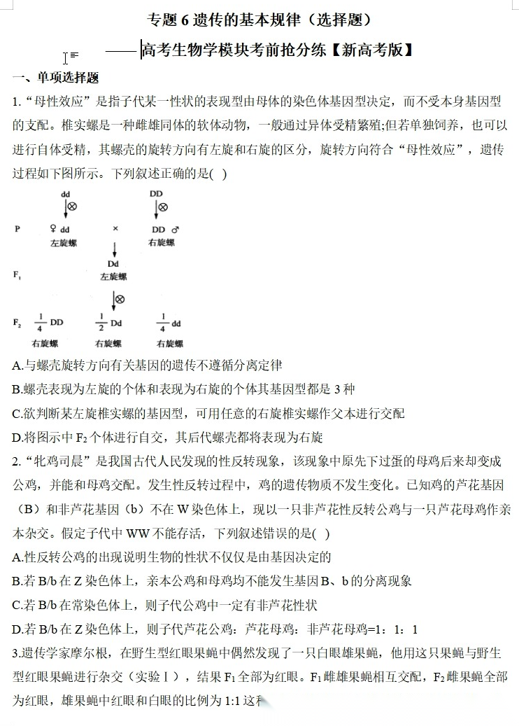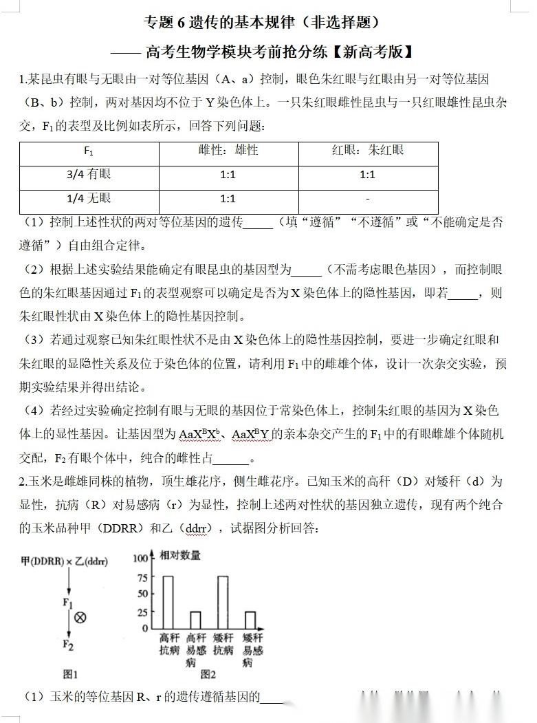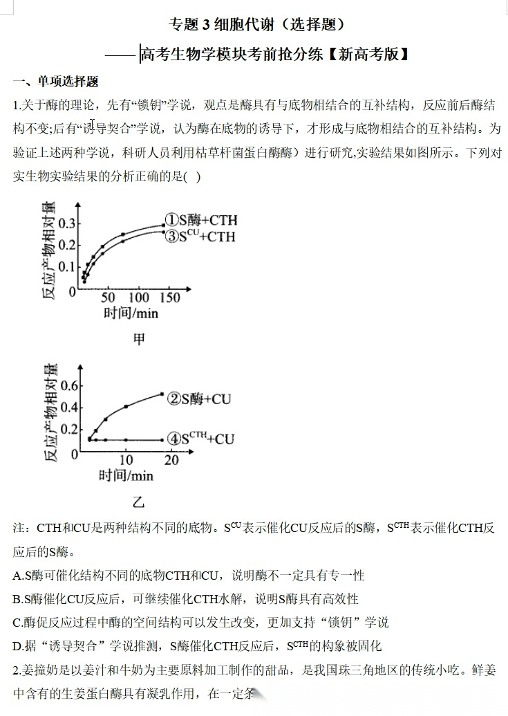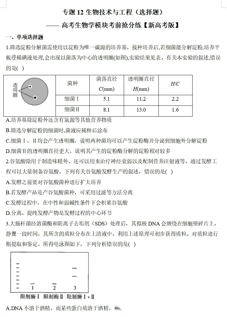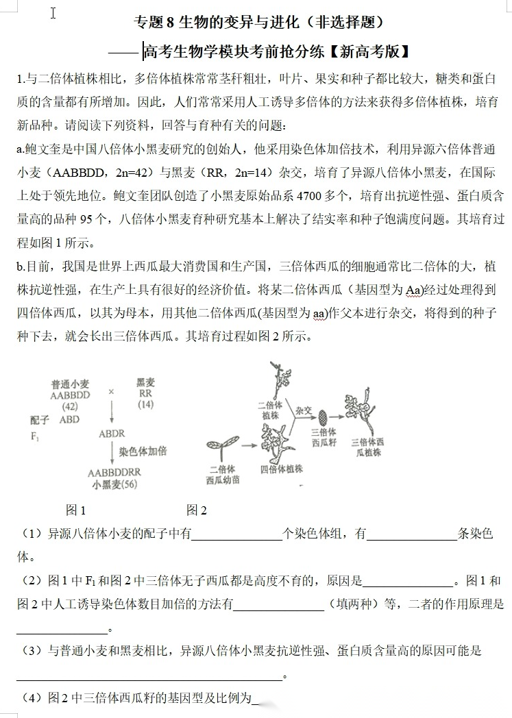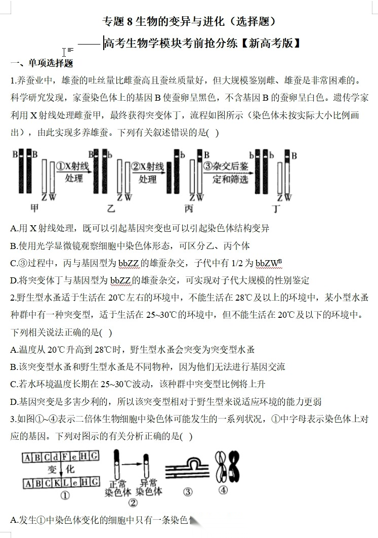 【高考生物】【二三轮专练】【选择题专练】【非选择题专练】高考生物学模块化分练--选择题与非选择题十三大专题模块化专练(含解析)