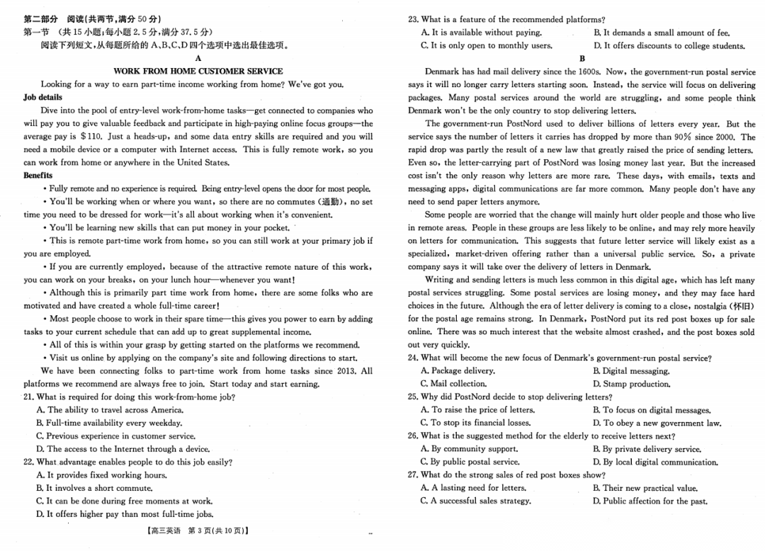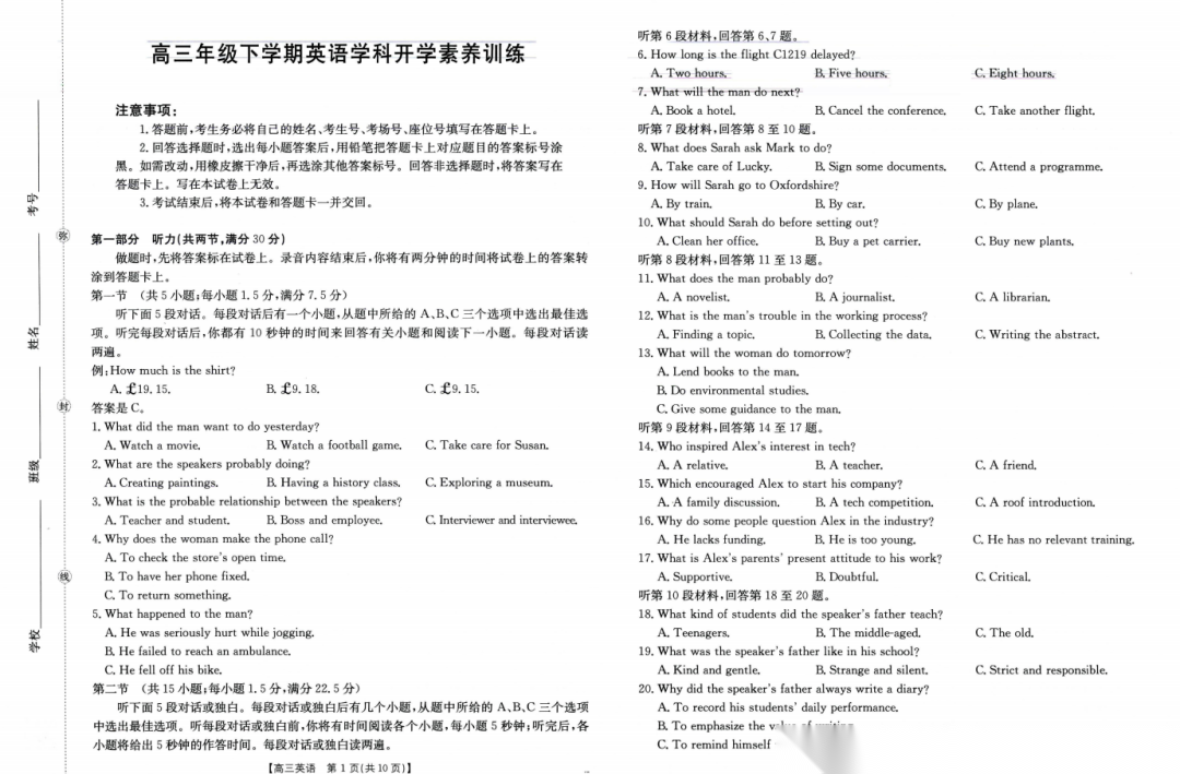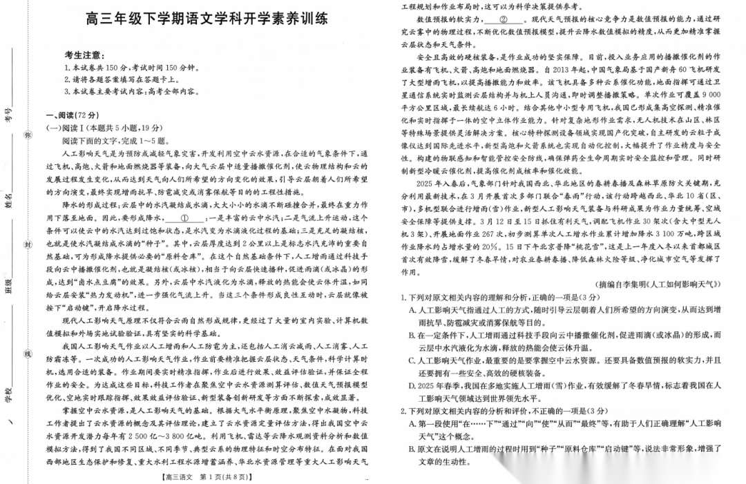 【江西卷】江西省·金太阳·2025-2026学年高三下学期2月开学素养训练(26-289C)(2.27-2.28) 全科试卷+答案