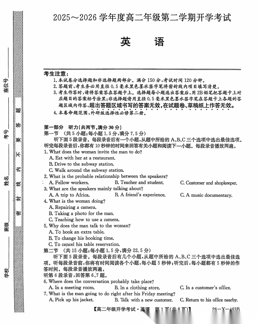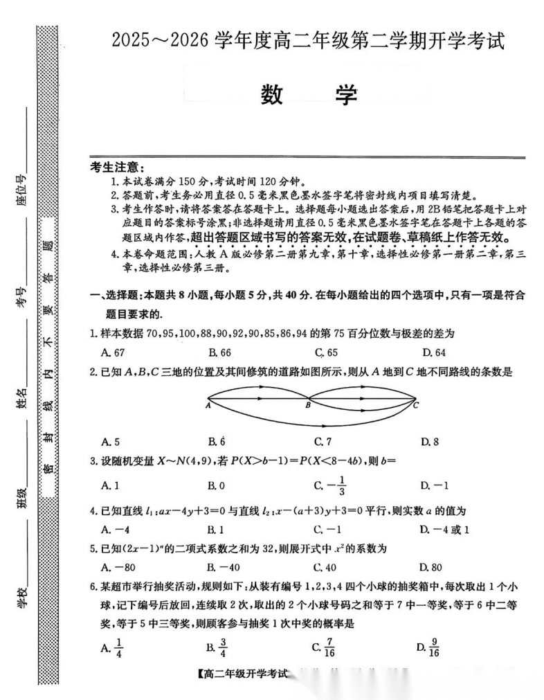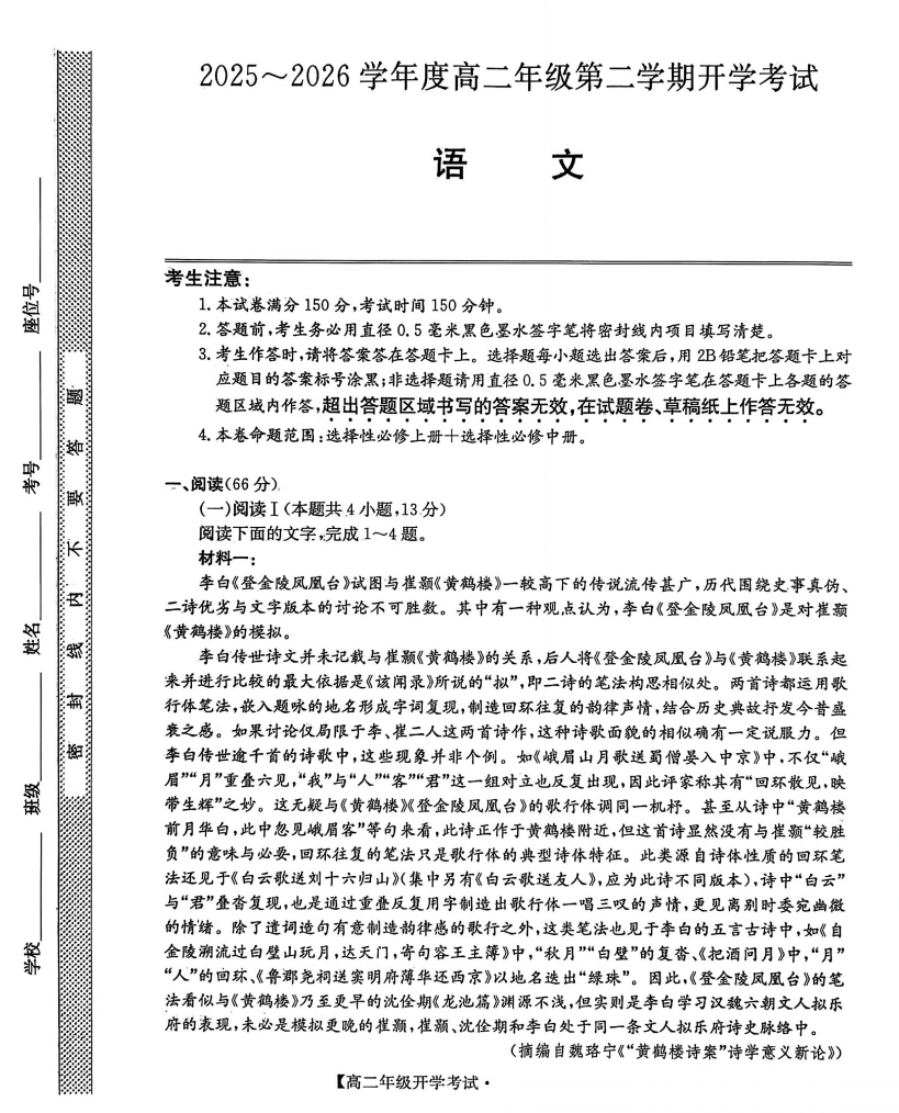 【黑吉辽蒙卷】【高二】黑龙江省龙东十校联盟2025-2026学年高二年级第二(下)学期开学考试(26-X-463B)(3.1-3.2) 全科试卷+答案