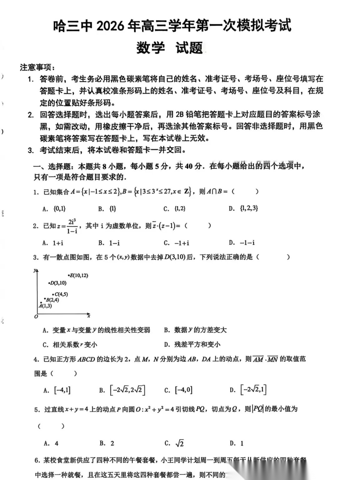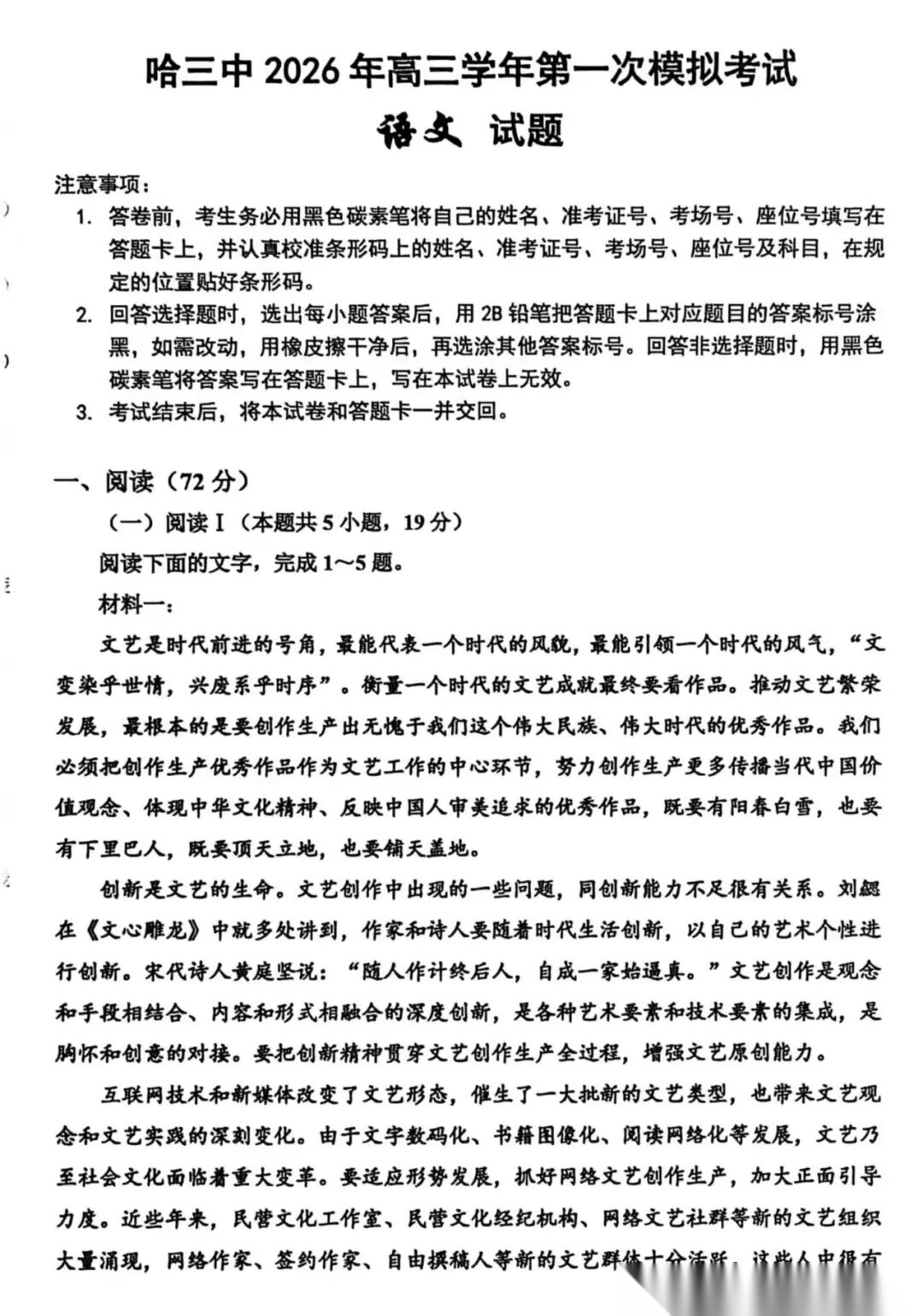 【自写答案】哈三中2026年高三学年第一次模拟考试暨哈三中一模试题(含小编自做答案)查漏补缺,仅供参考!