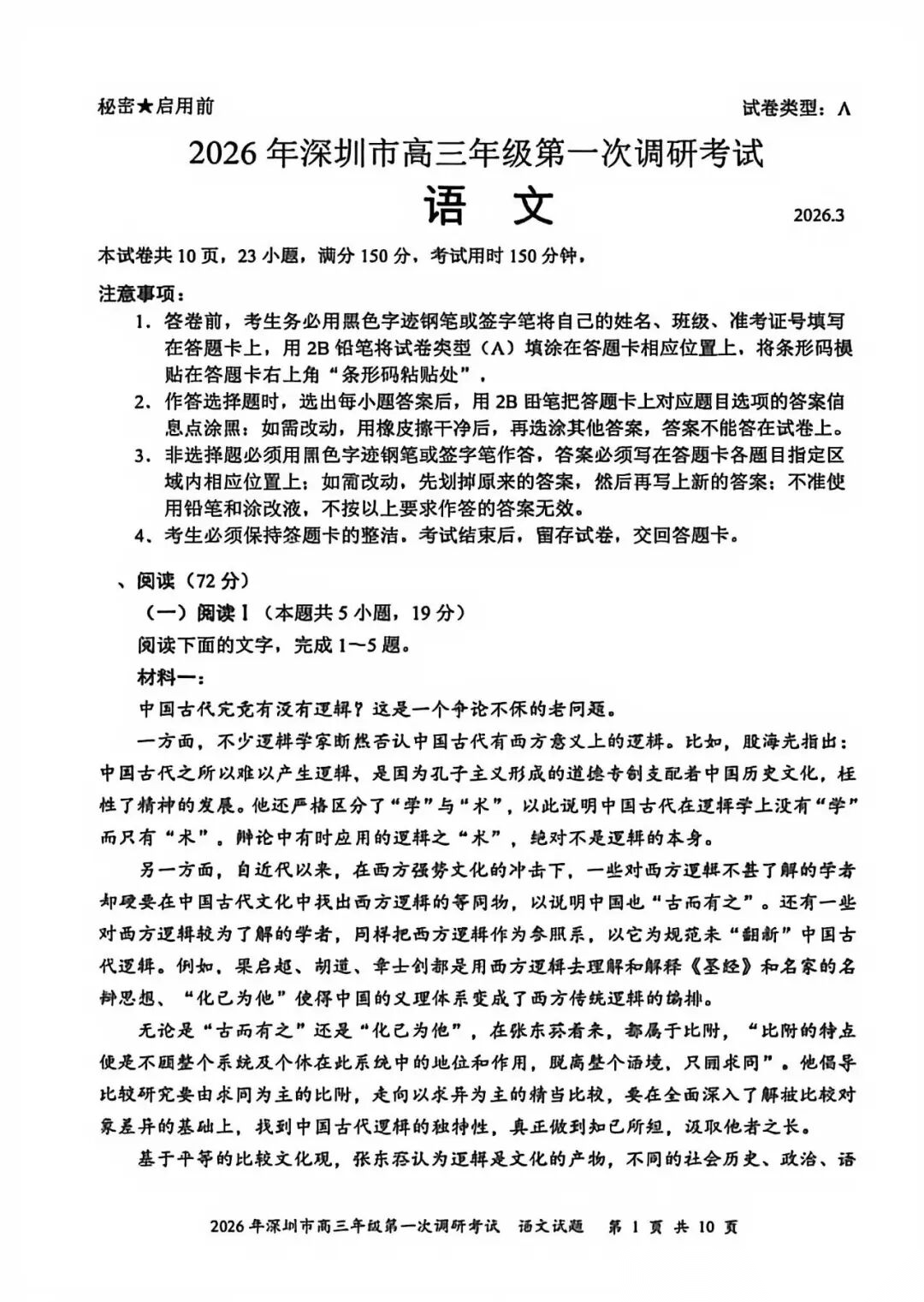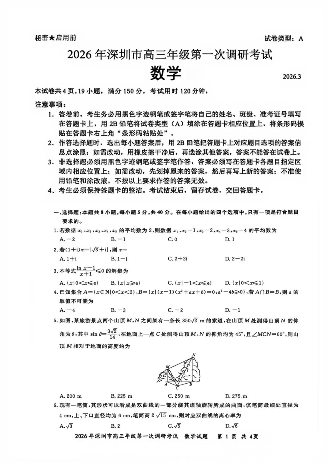 【深圳一模自做答案】2026年深圳市高三年级第一次调研考试暨深圳高三一模试题及自做解析答案!仅供参考查漏补缺
