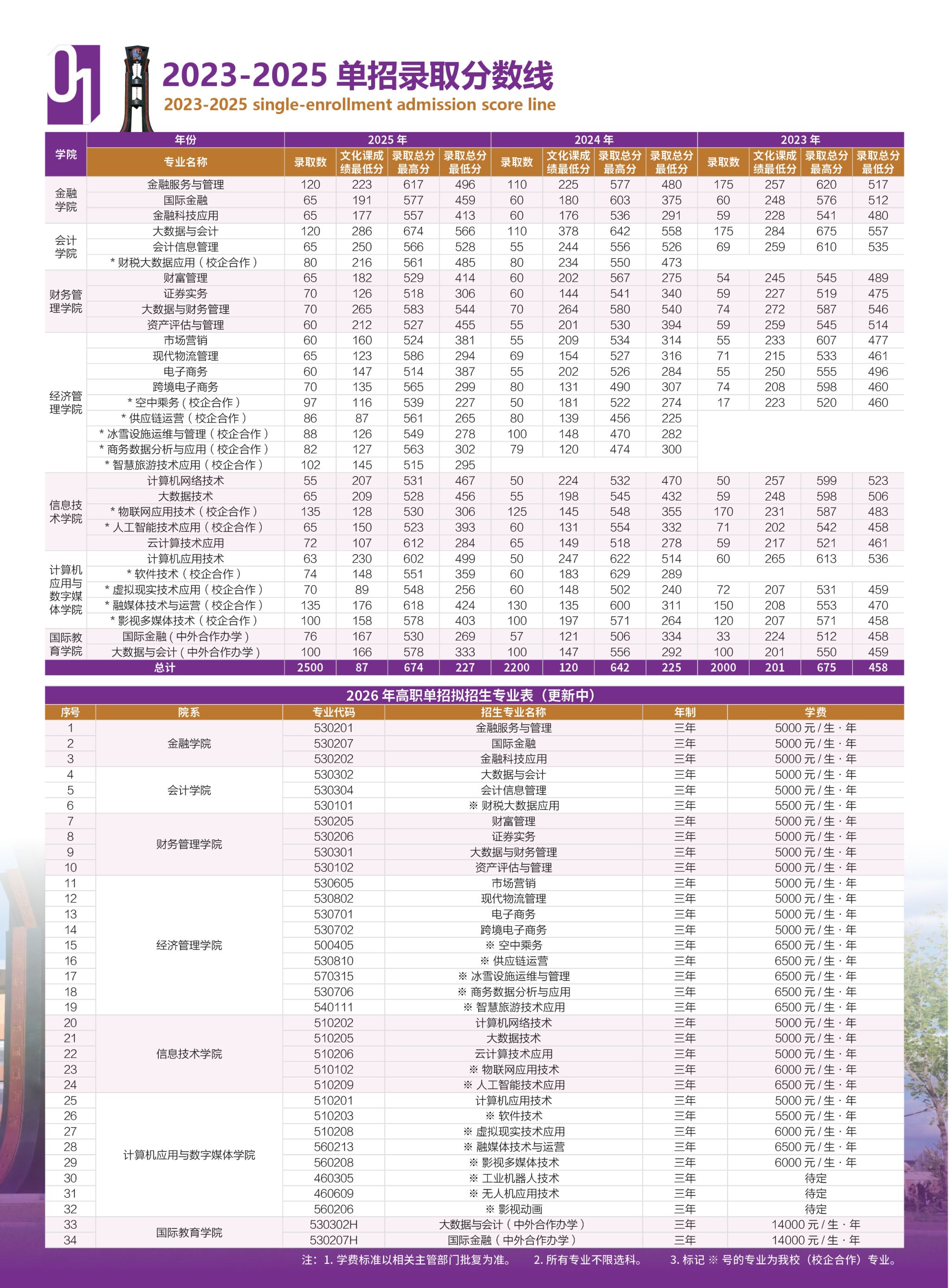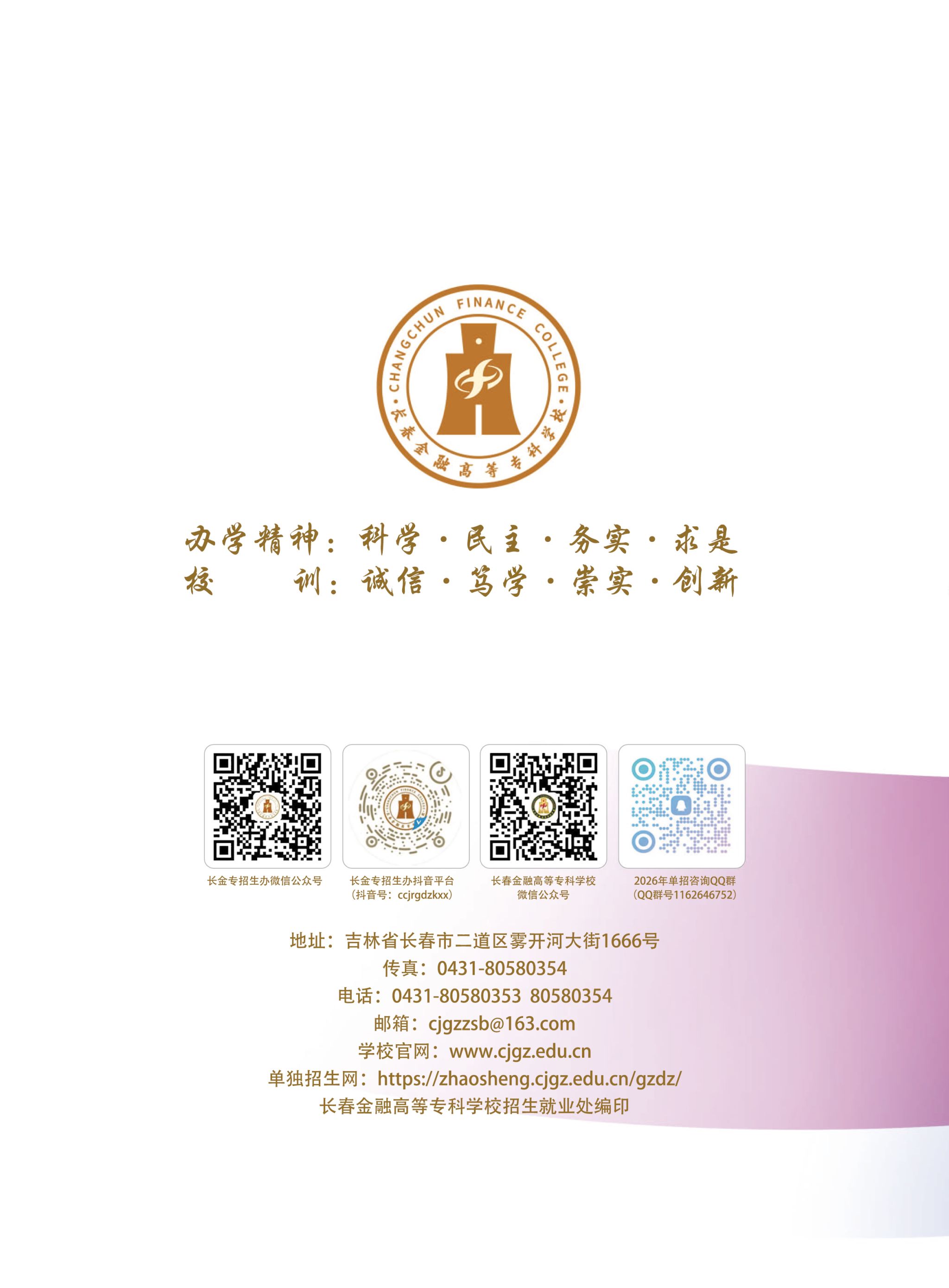 长春金融高等专科学校2026年单招招生简章
