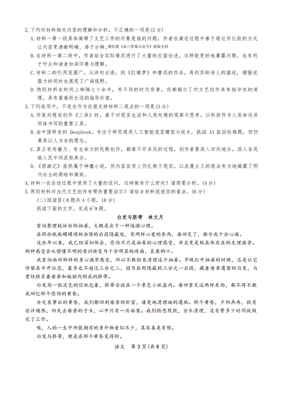 2026百师联盟高三3月联考答案 2026百师联盟高三3月联考答案