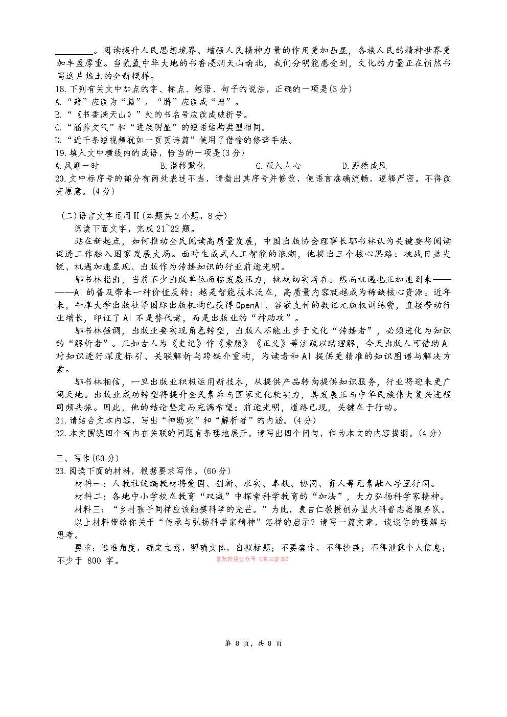 2026青桐鸣高三3月联考答案 2026青桐鸣高三3月联考答案