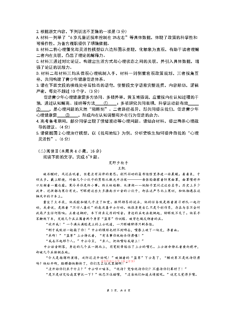 2026百师联盟高三3月联考答案 2026百师联盟高三3月联考答案