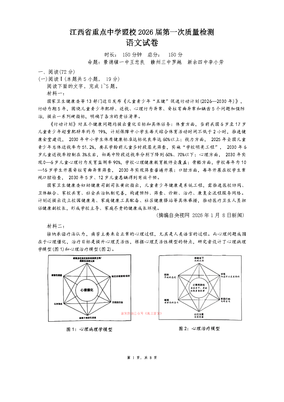 江南十校2026届高三综合素质检测答案 江南十校2026届高三综合素质检测答案