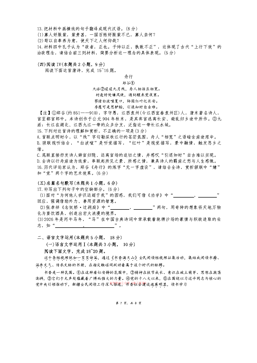 2026九师联盟高三第7次质量检测答案 2026九师联盟高三第7次质量检测答案