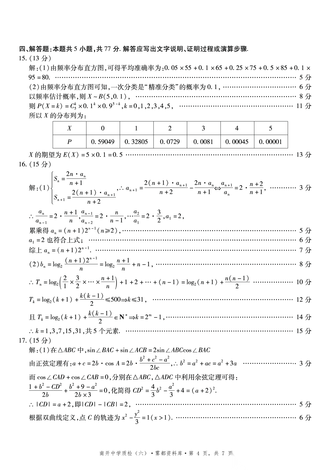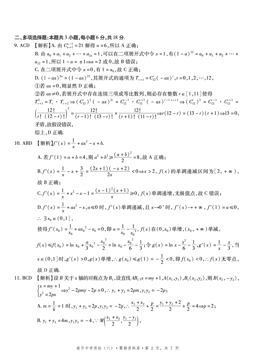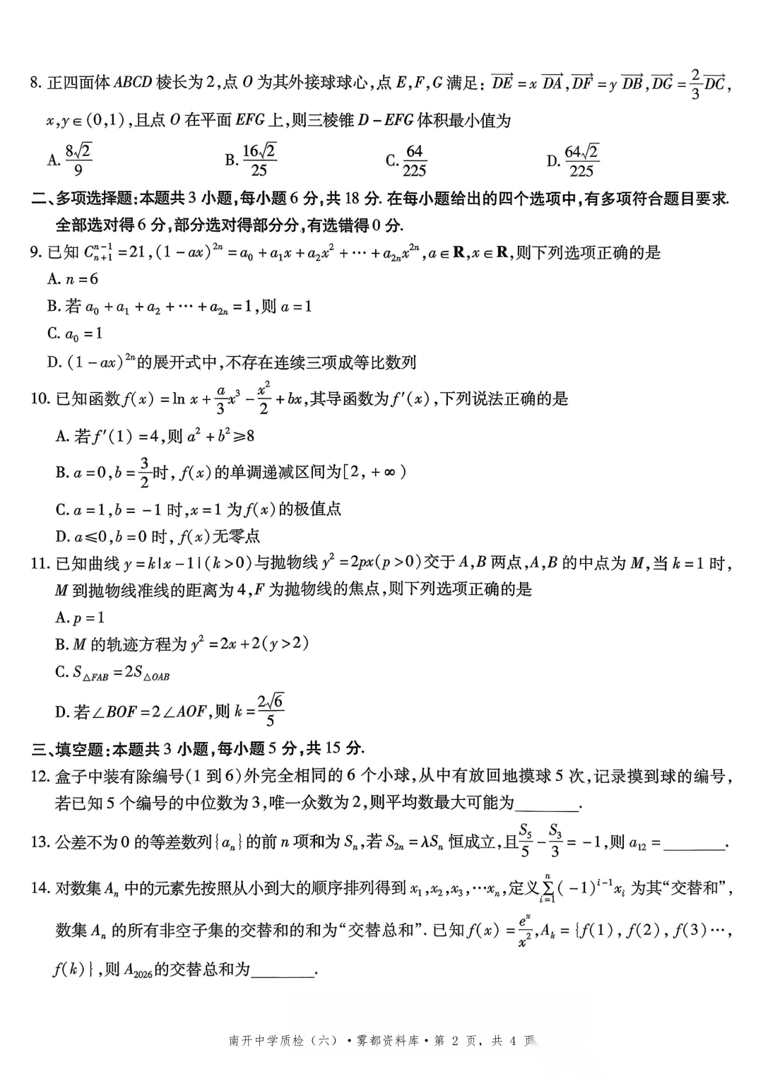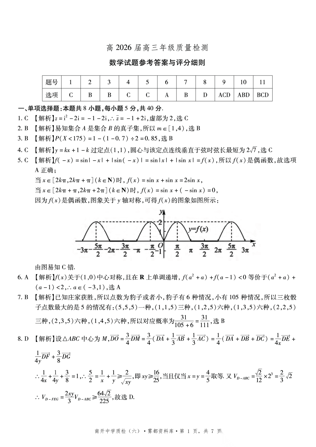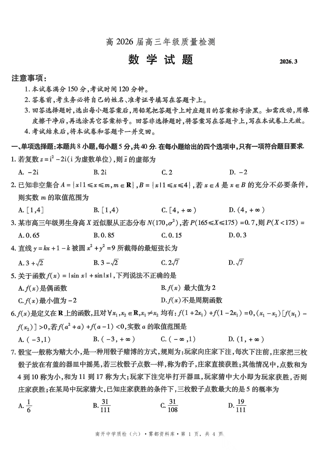 【全科】重庆市南开中学高2026届高三3月质量检测联考六