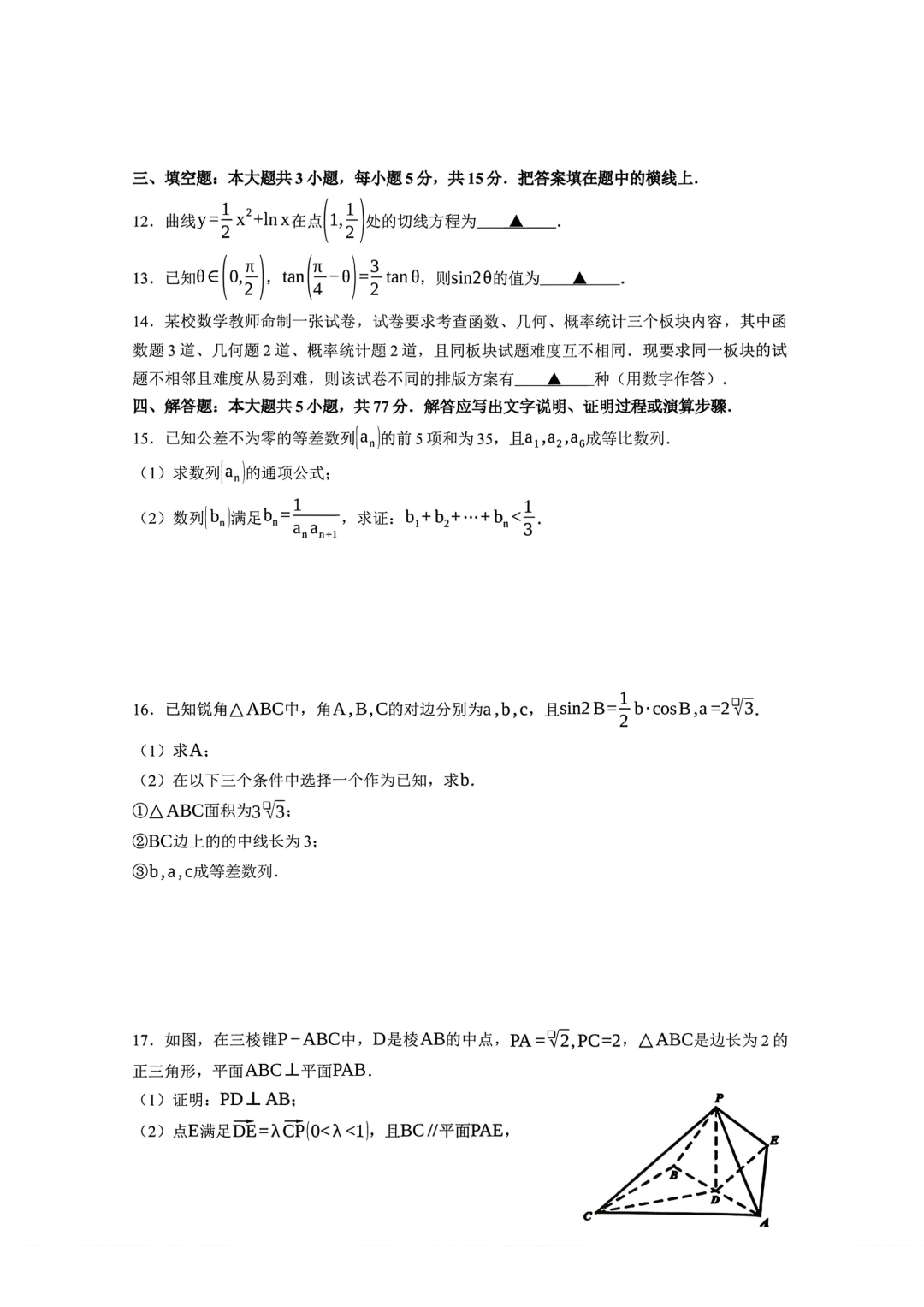 江南十校2026届高三综合素质检测答案 江南十校2026届高三综合素质检测答案