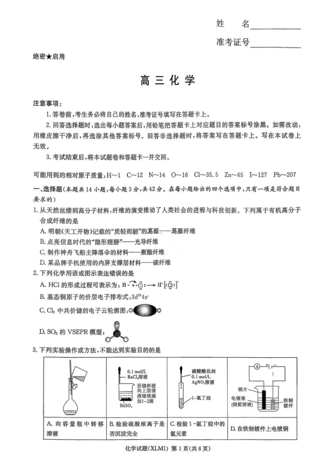 【超清无水印】:高三,长郡二十校-湖南新高考教学教研联盟2026届高三3月联考