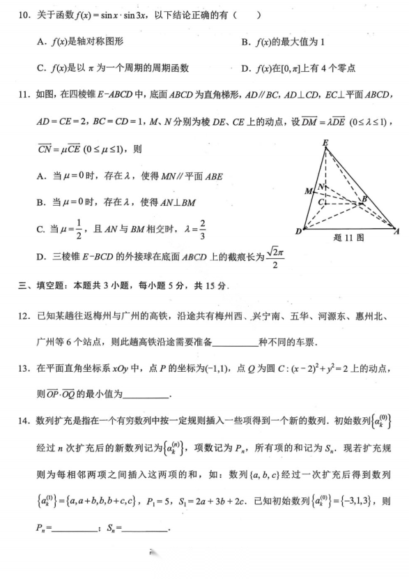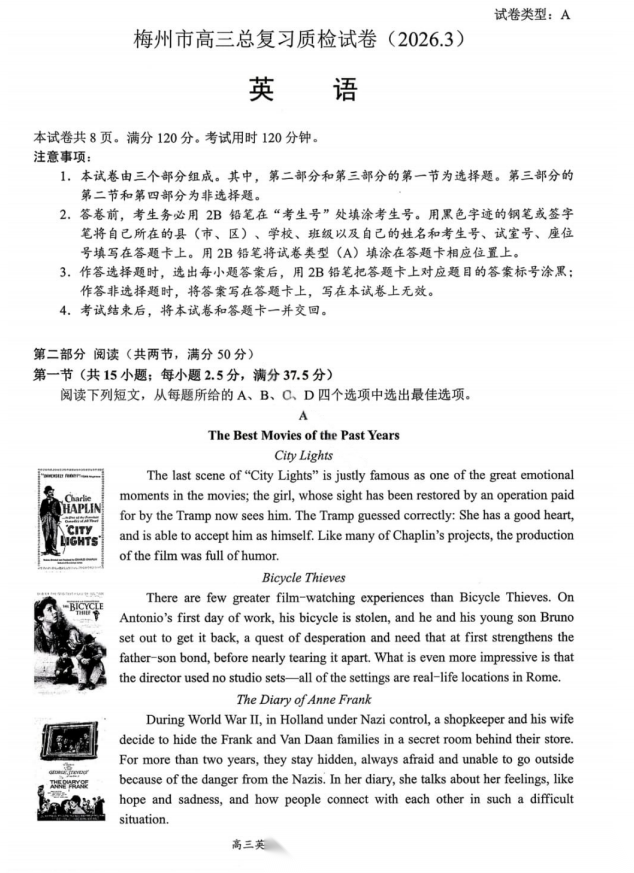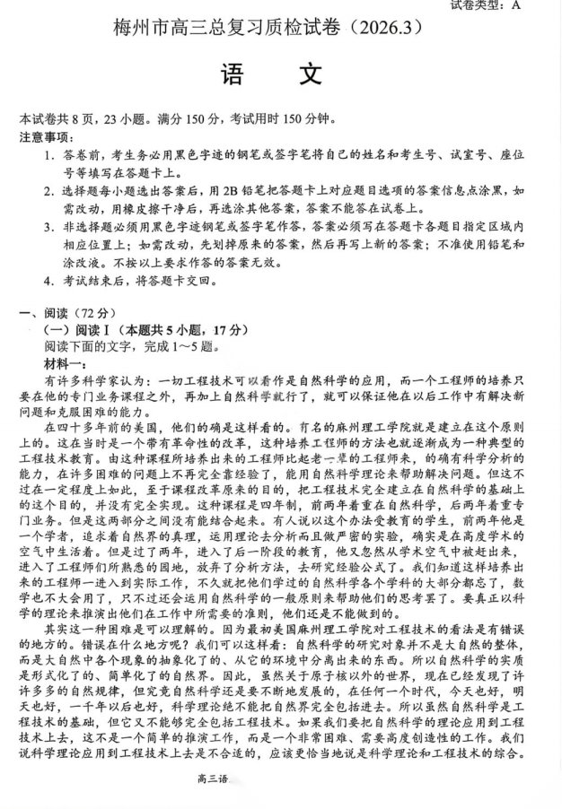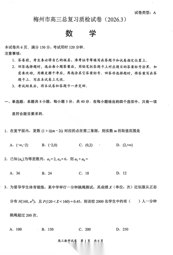 【补齐重发】【广东卷】广东省梅州市2026届高三年级3月总复习质检试卷(梅州一模)(3.2-3.4) 全科试题卷+答案