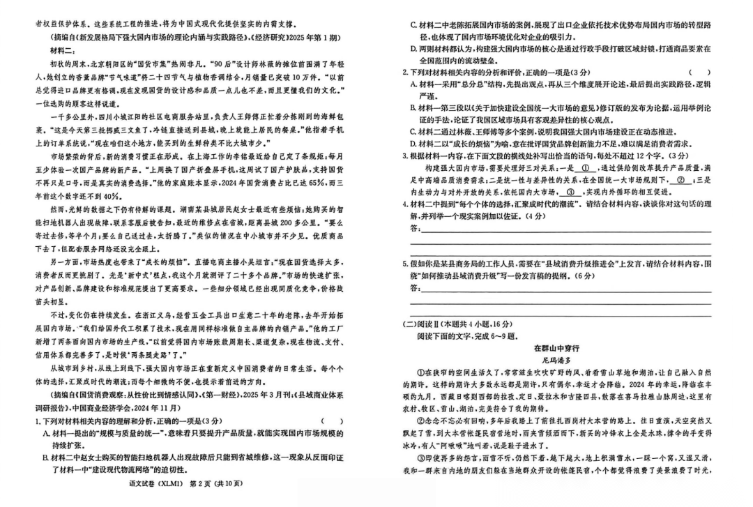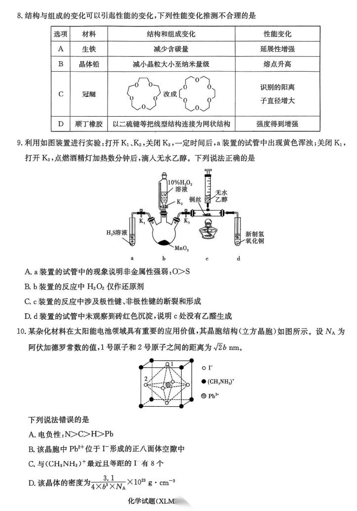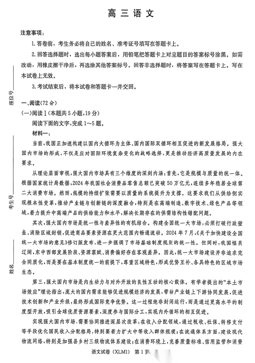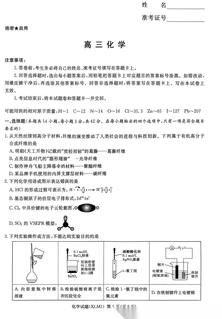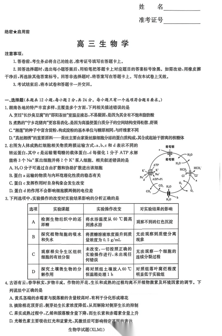 【湖南卷】湖南省新高考教学教研联盟(长郡二十校联盟)2026届高三年级下学期3月联考(3.4-3.5) 化学生物语文地理政治试题卷+答案
