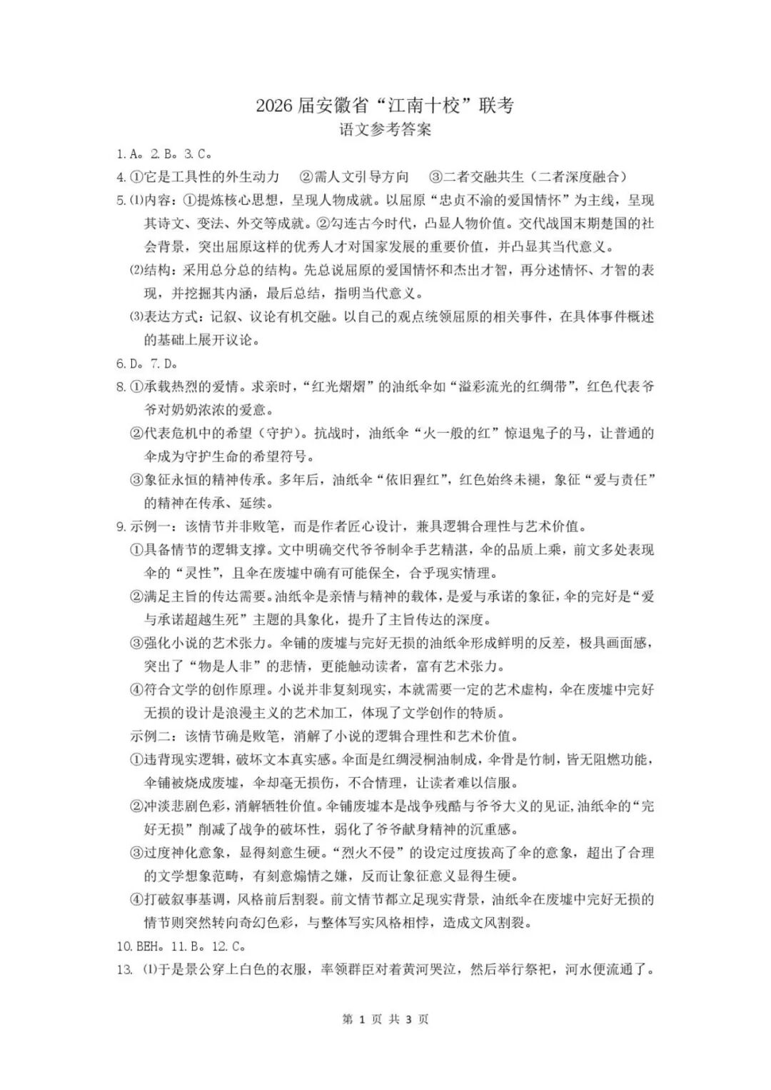 安徽省江南十校2025-2026学年高三下学期开学考试