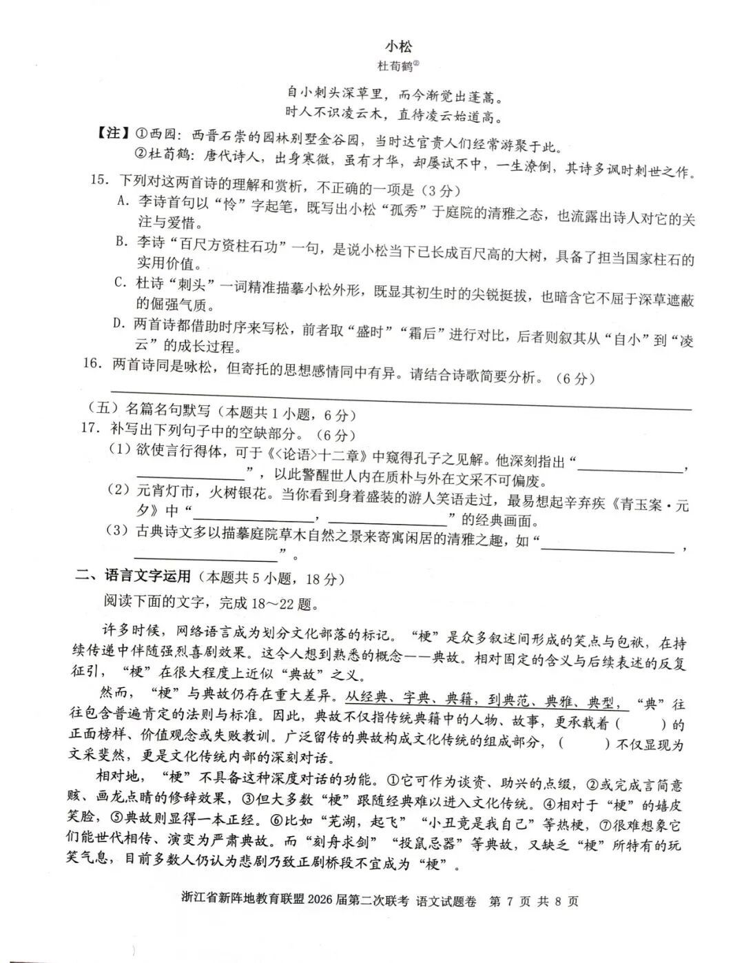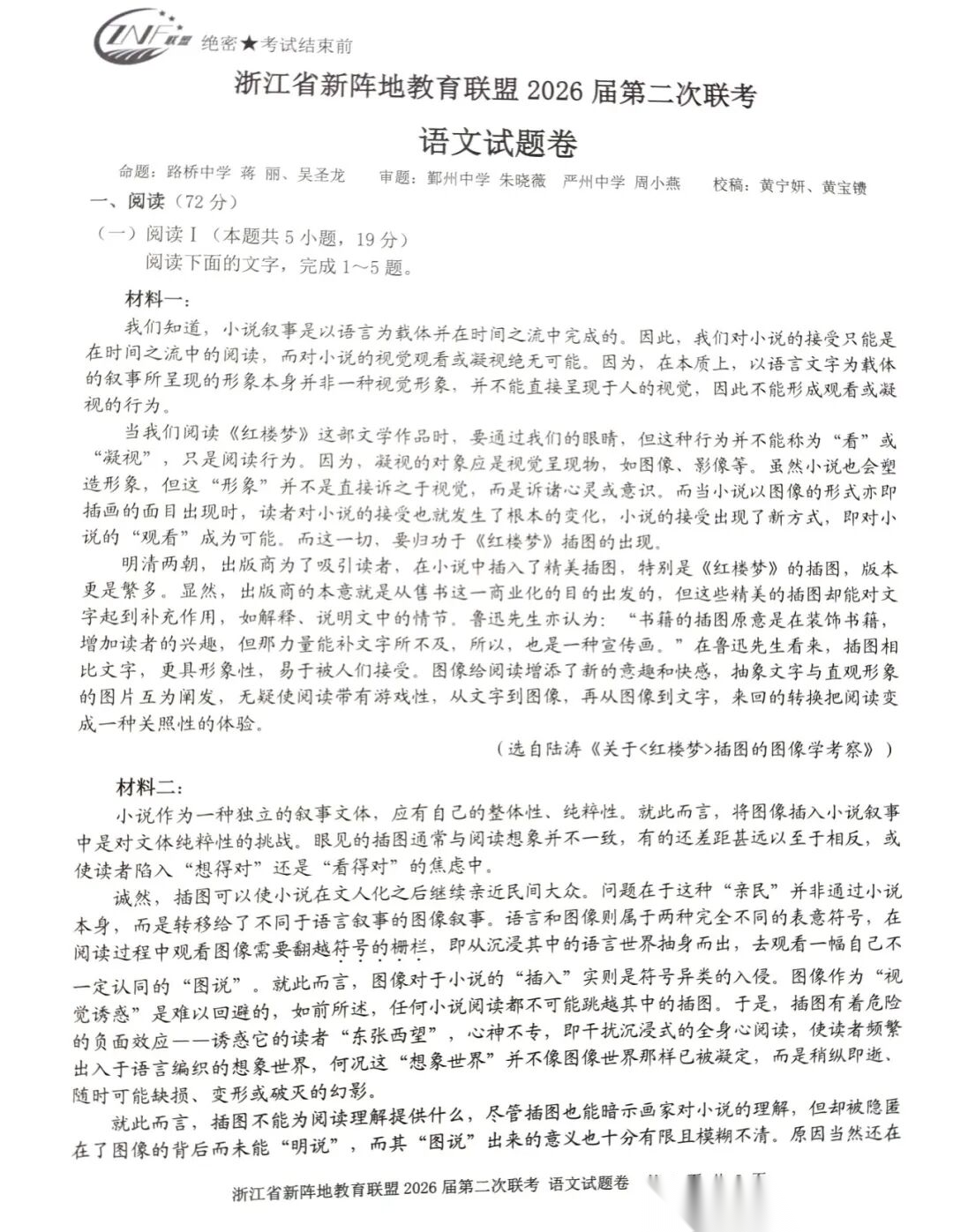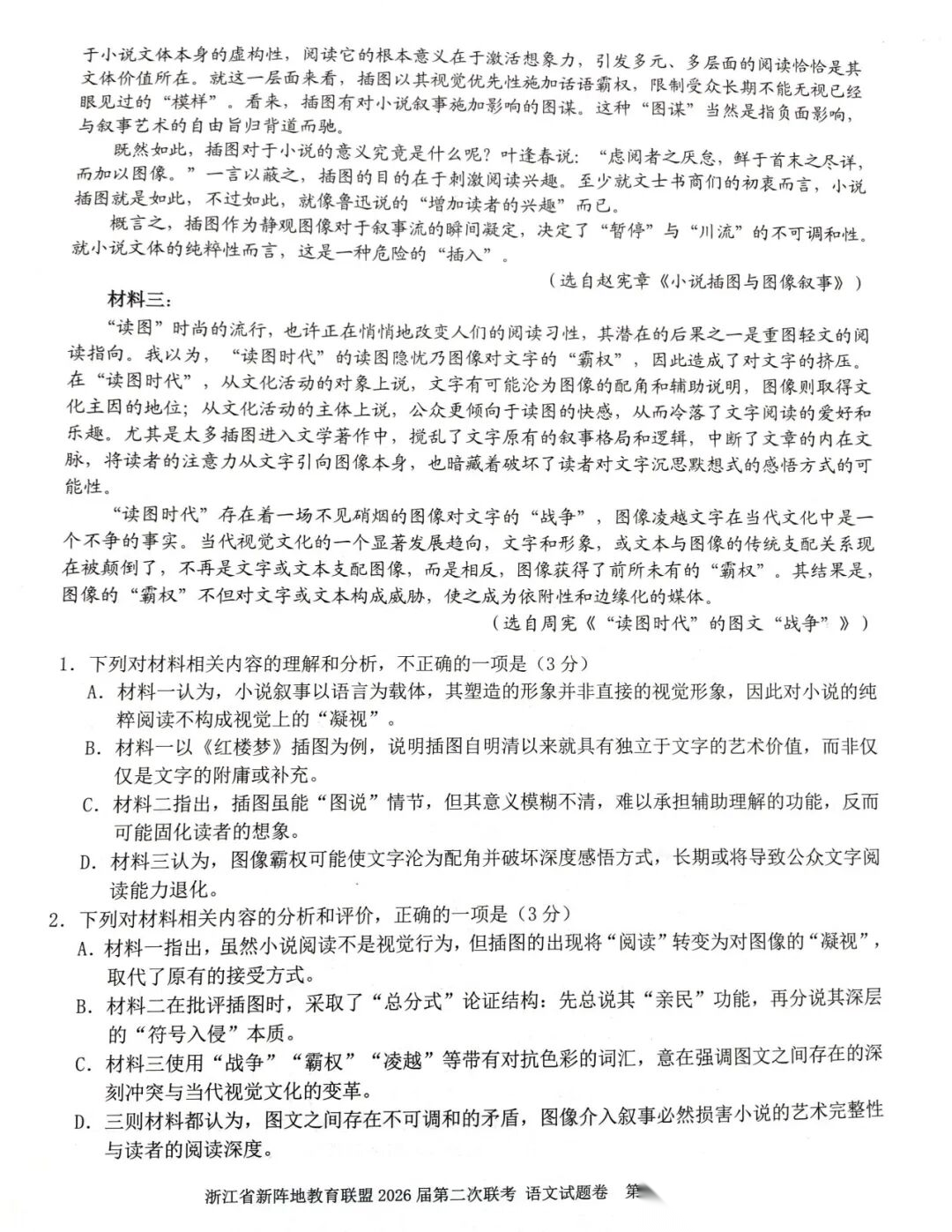 【浙江卷】浙江省名校协作体(G12)2026届高三3月联考暨开学返校考试(G12二模)(3.4-3.5) 数学物理技术语文政治试题卷+答案 【浙江卷】浙江省名校协作体(G12)2026届高三3月联考暨开学返校考试(G12二模)(3.4-3.5) 数...