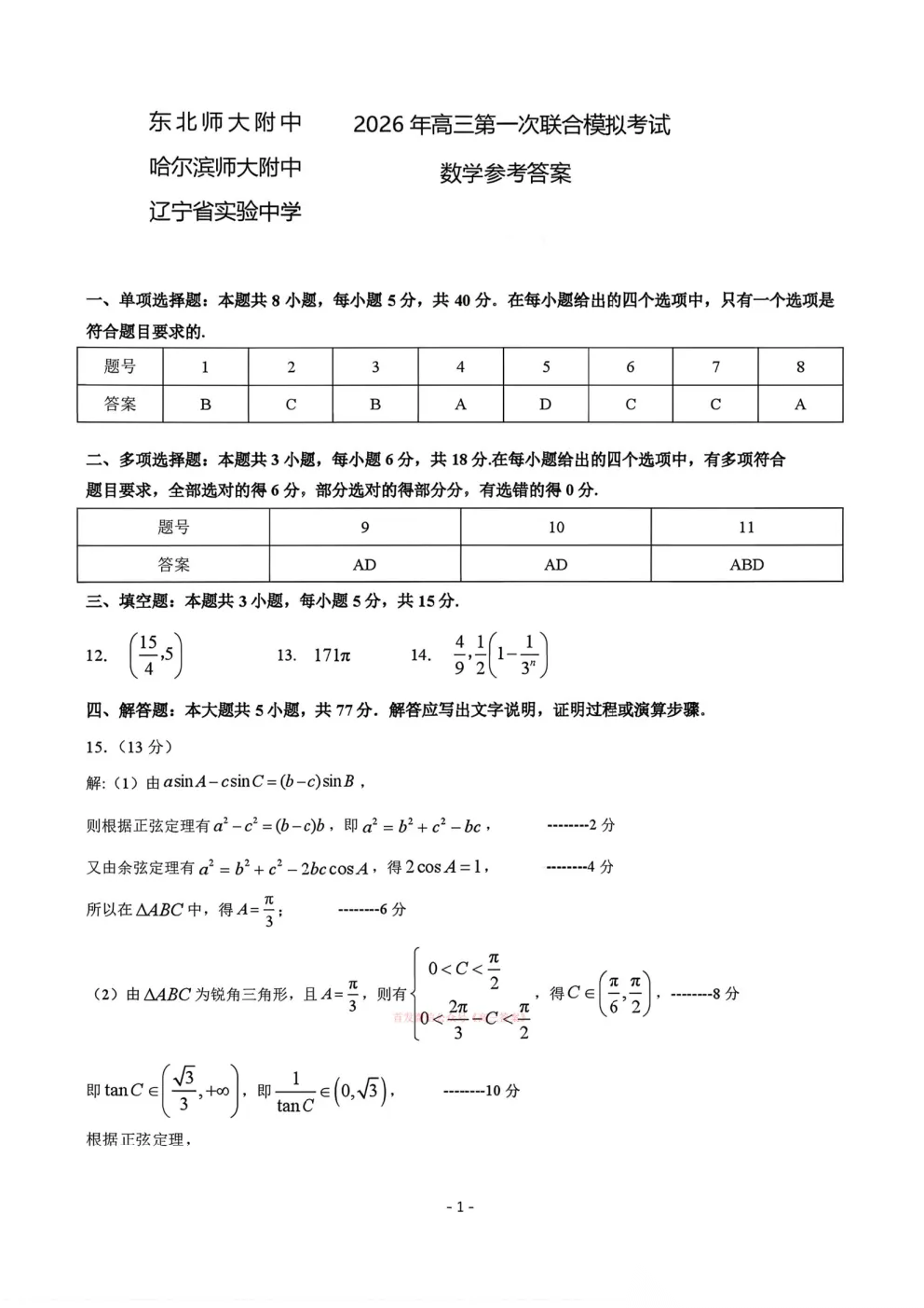 【三省三校一模】2026年高三第一次联合模拟考试下载