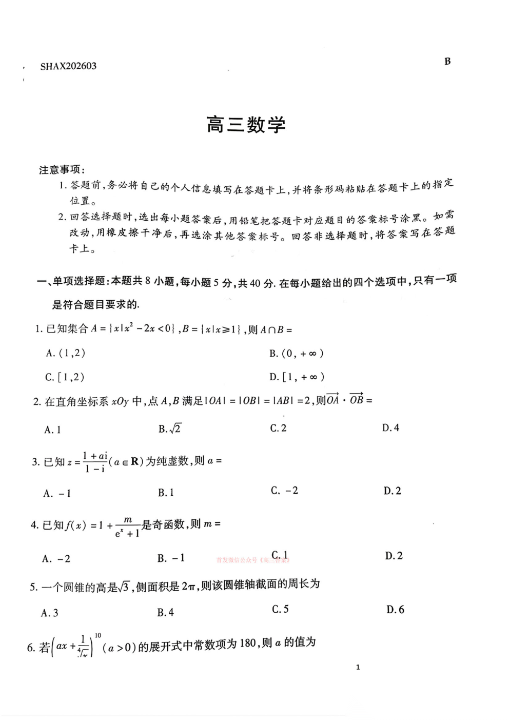 【三省三校一模】2026年高三第一次联合模拟考试下载 【三省三校一模】2026年高三第一次联合模拟考试下载