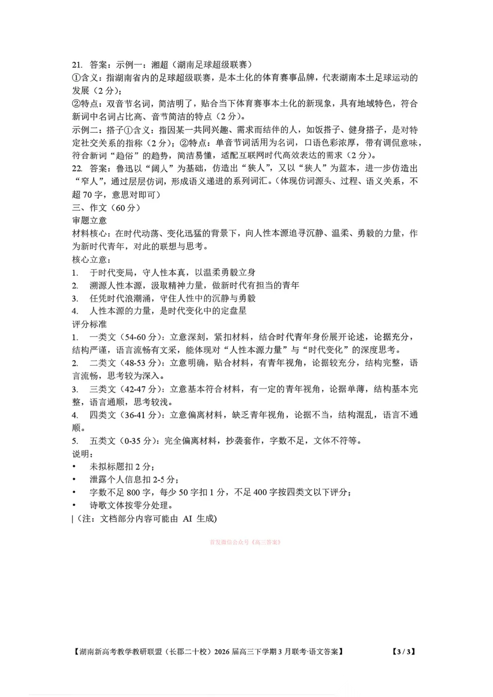 湖南新高考教学教研联盟(长郡二十校)2026届高三下学期3月联考下载