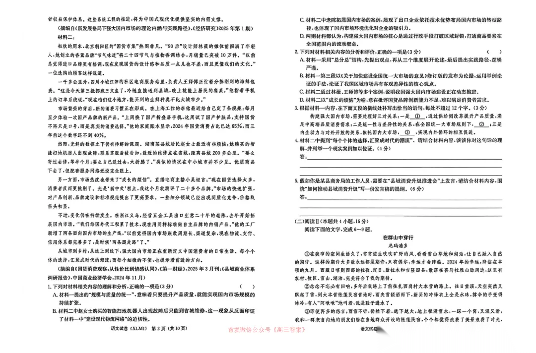【三省三校一模】2026年高三第一次联合模拟考试下载 【三省三校一模】2026年高三第一次联合模拟考试下载