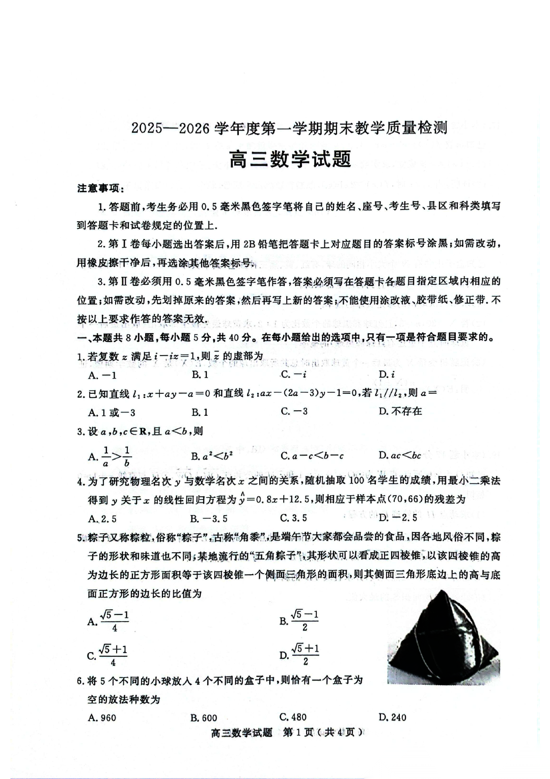 内蒙古包头市2026届高三上学期期末教学质量检测试卷 内蒙古包头市2026届高三上学期期末教学质量检测试卷