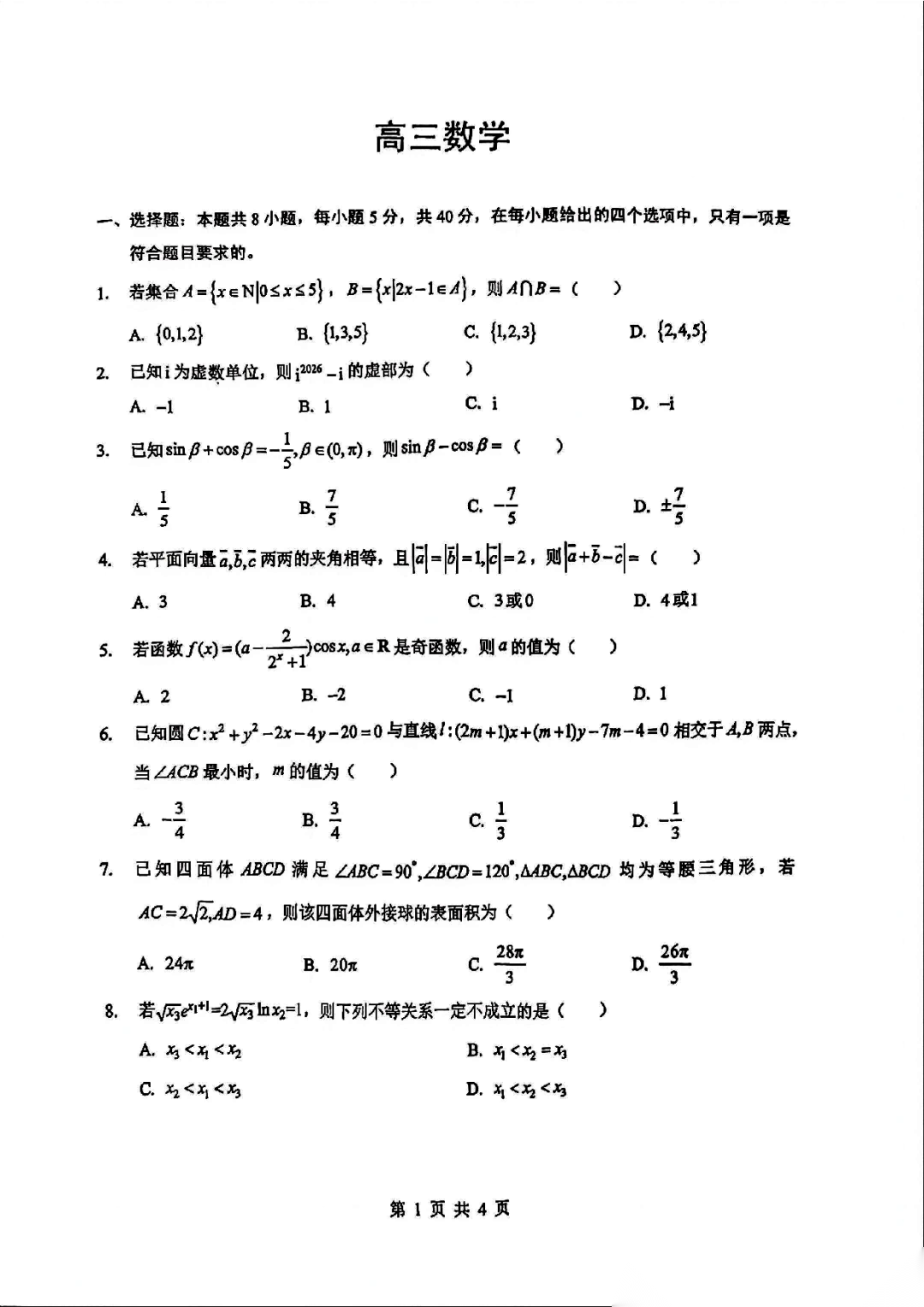 新疆2026届高三上学期普通高考二月适应性检测 新疆2026届高三上学期普通高考二月适应性检测