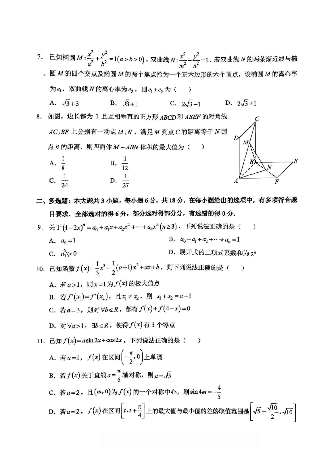 安徽省A10联盟2026届高三2月开年考 安徽省A10联盟2026届高三2月开年考