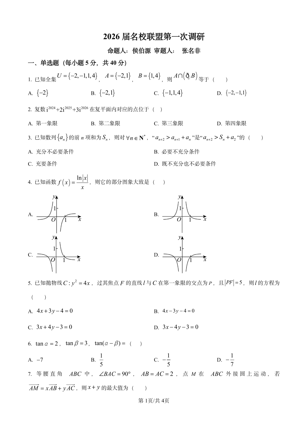湖北省云学联盟2026届高三年级2月阶段训练 湖北省云学联盟2026届高三年级2月阶段训练
