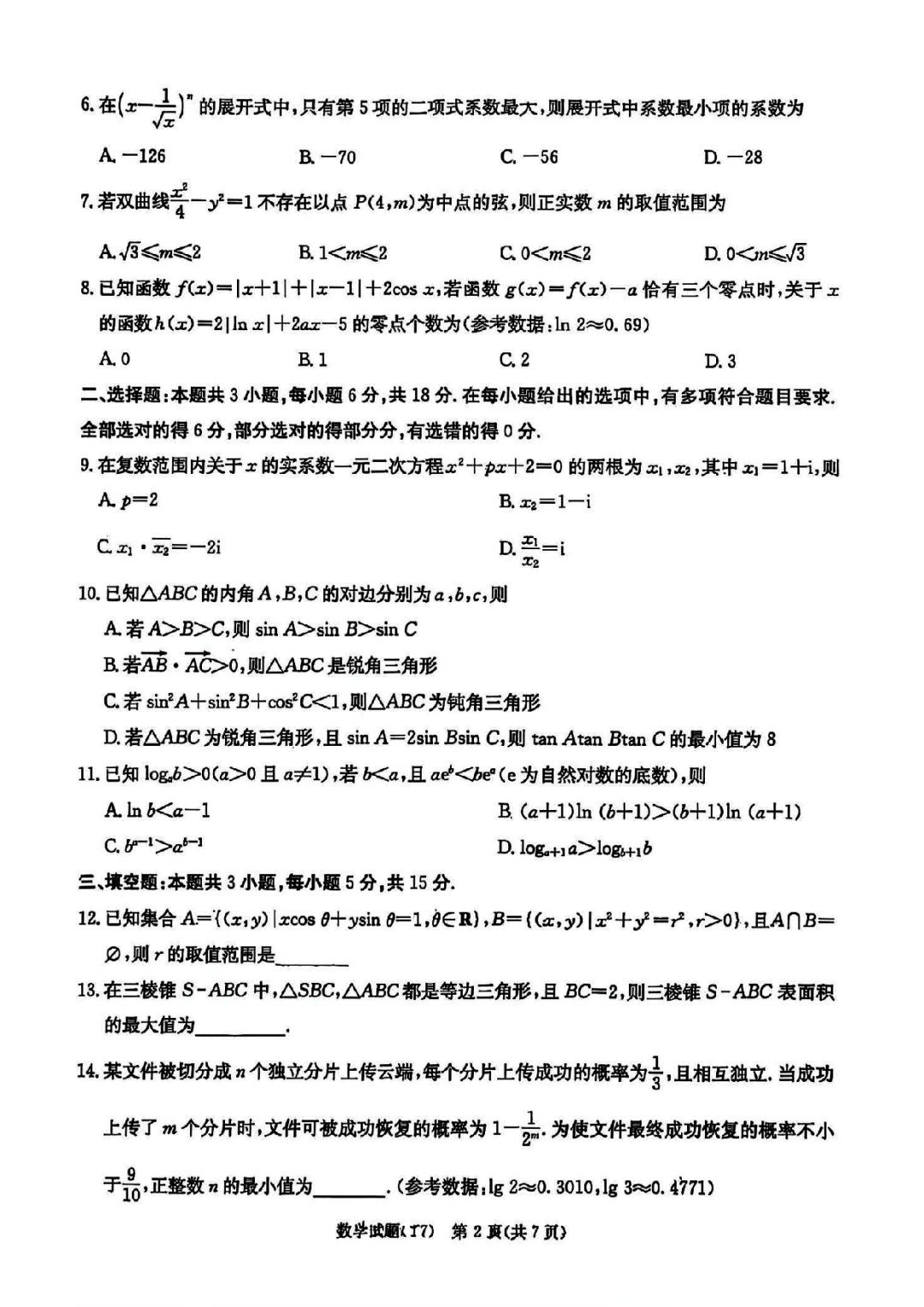 湖南师范大学附属中学2026届高三2月月考试卷(七)