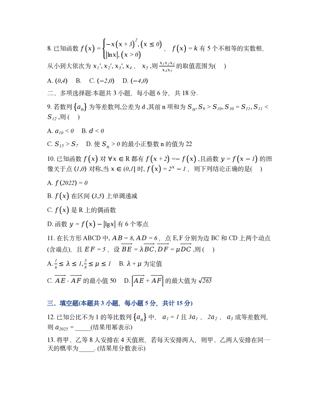 湖南长沙市雅礼中学2026届高三下学期开学考试 湖南长沙市雅礼中学2026届高三下学期开学考试