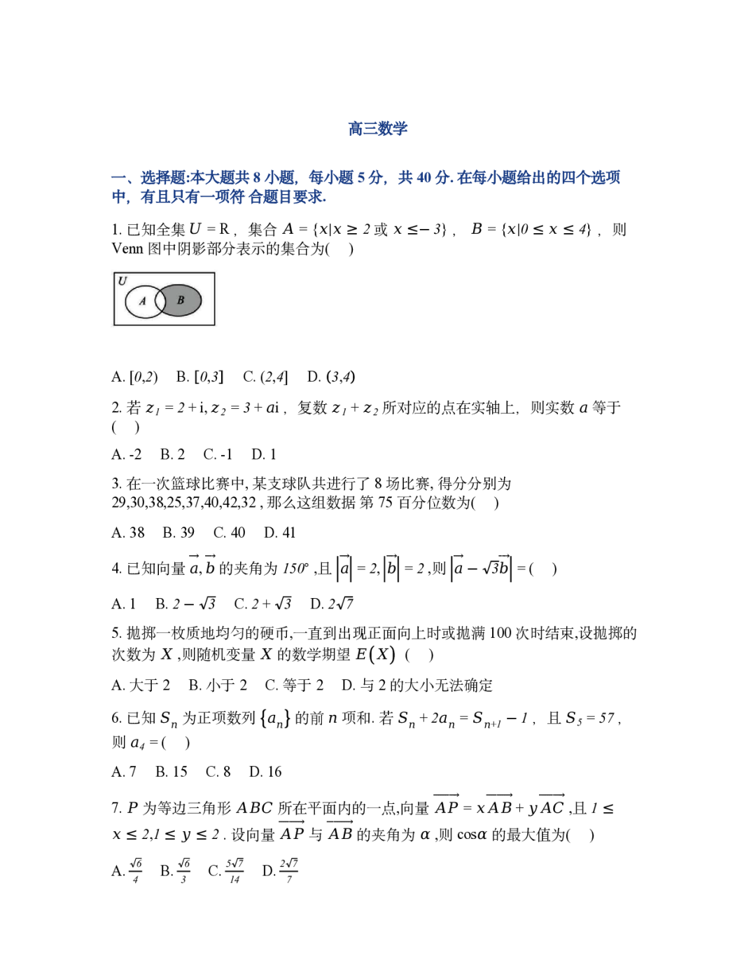 浙江省2026届高三2月返校考七彩阳光、浙南名校、精诚联盟、金兰教育 浙江省2026届高三2月返校考七彩阳光、浙南名校、精诚联盟、金兰教育