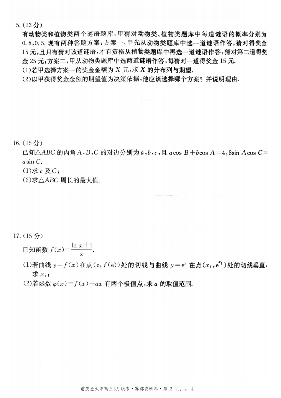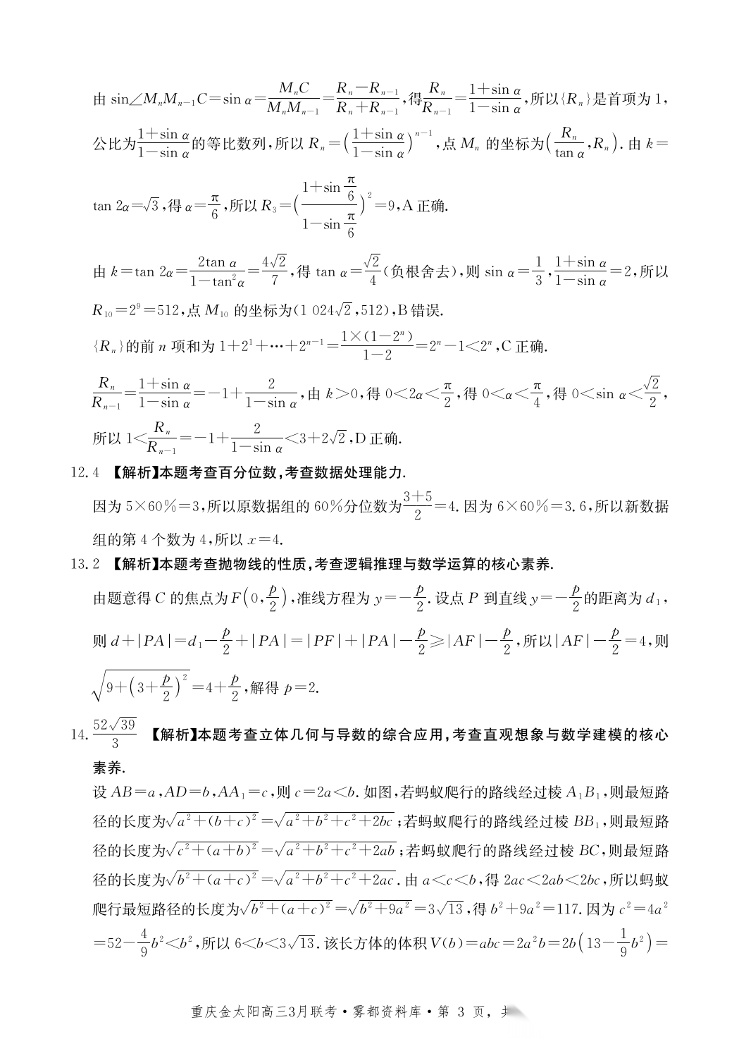 【全科】2026届重庆市高三金太阳3月开学联考