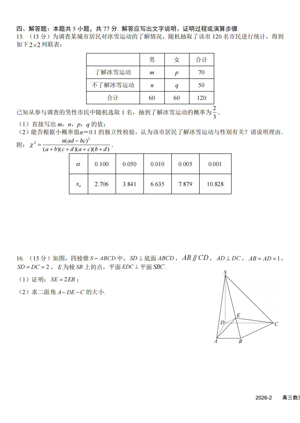 黑龙江省哈尔滨市第一中学、第六中学2026届高三二月阶段性测试 黑龙江省哈尔滨市第一中学、第六中学2026届高三二月阶段性测试