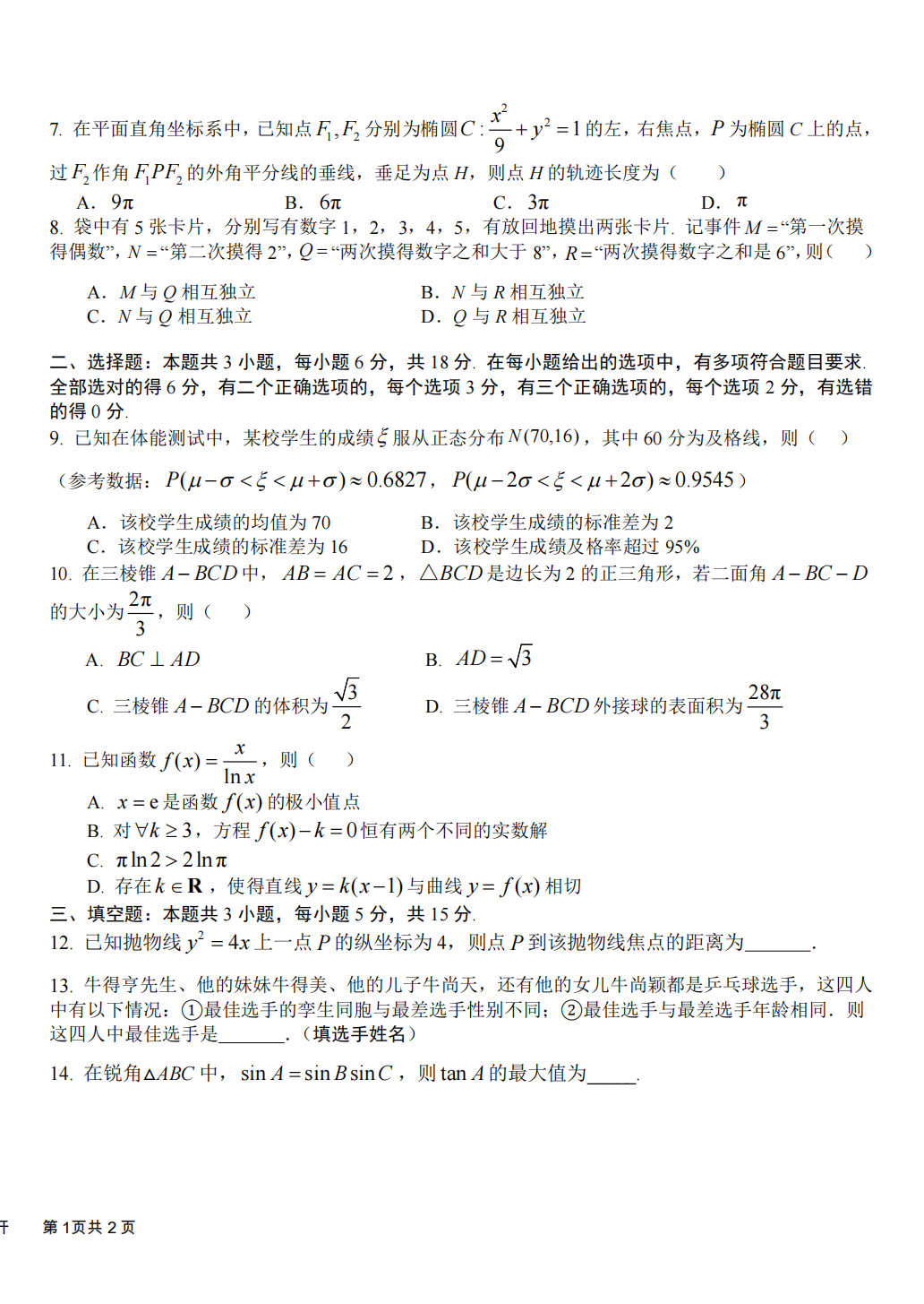 湖南长沙市雅礼中学2026届高三下学期开学考试 湖南长沙市雅礼中学2026届高三下学期开学考试