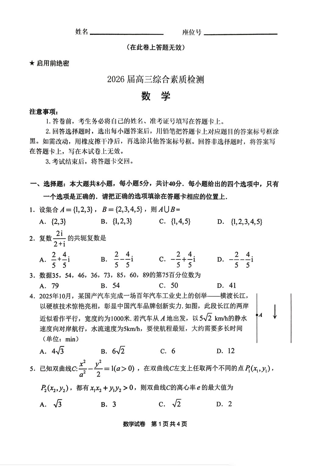 【深圳一模全科】2026年深圳市高三年级第一次调研考试 【深圳一模全科】2026年深圳市高三年级第一次调研考试