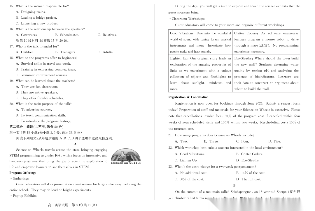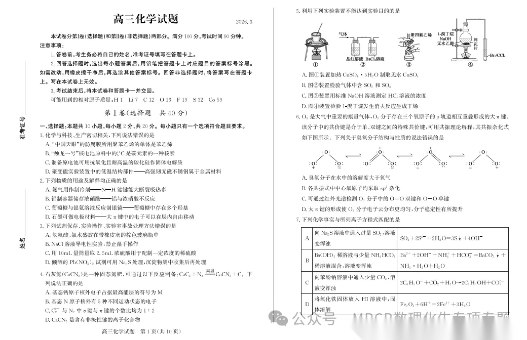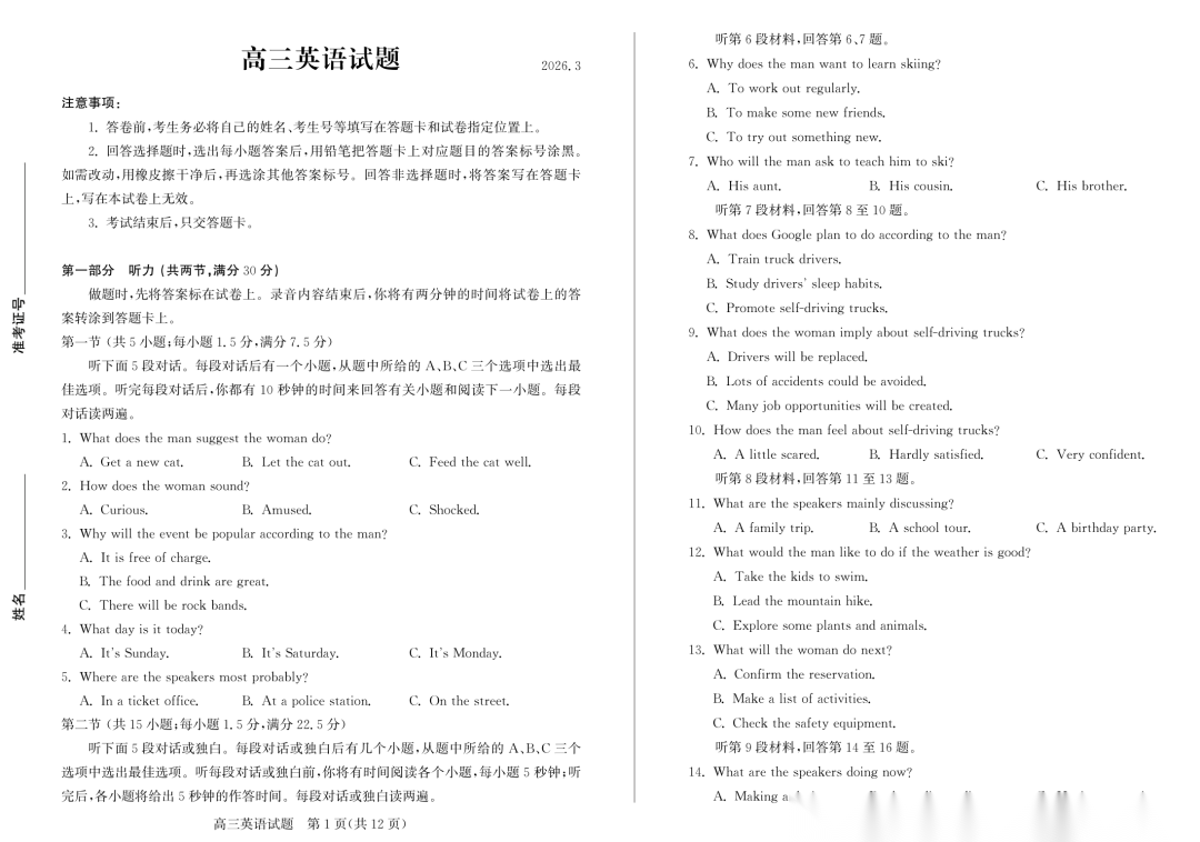 【超清无水印】:高三,浙江省名校协作体(G12)2026届高三3月联考 【超清无水印】:高三,浙江省名校协作体(G12)2026届高三3月联考