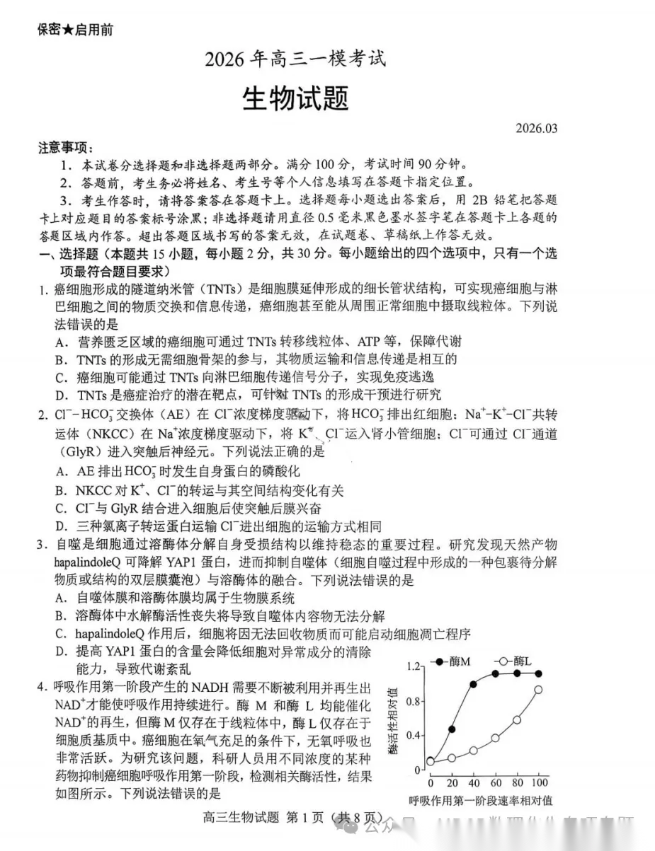 【山东卷】山东省菏泽市2026年高三一模考试(菏泽一模)(3.4-3.6) 全科试题卷(缺化学)+答案