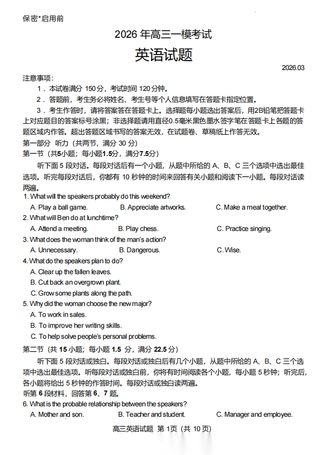 【广东卷】广东省深圳市2026年高三年级第一次调研考试(深圳一模)(3.4-3.6) 全科试题卷(含日语)+答案 【广东卷】广东省深圳市2026年高三年级第一次调研考试(深圳一模)(3.4-3.6) 全科试题卷(含日语)...