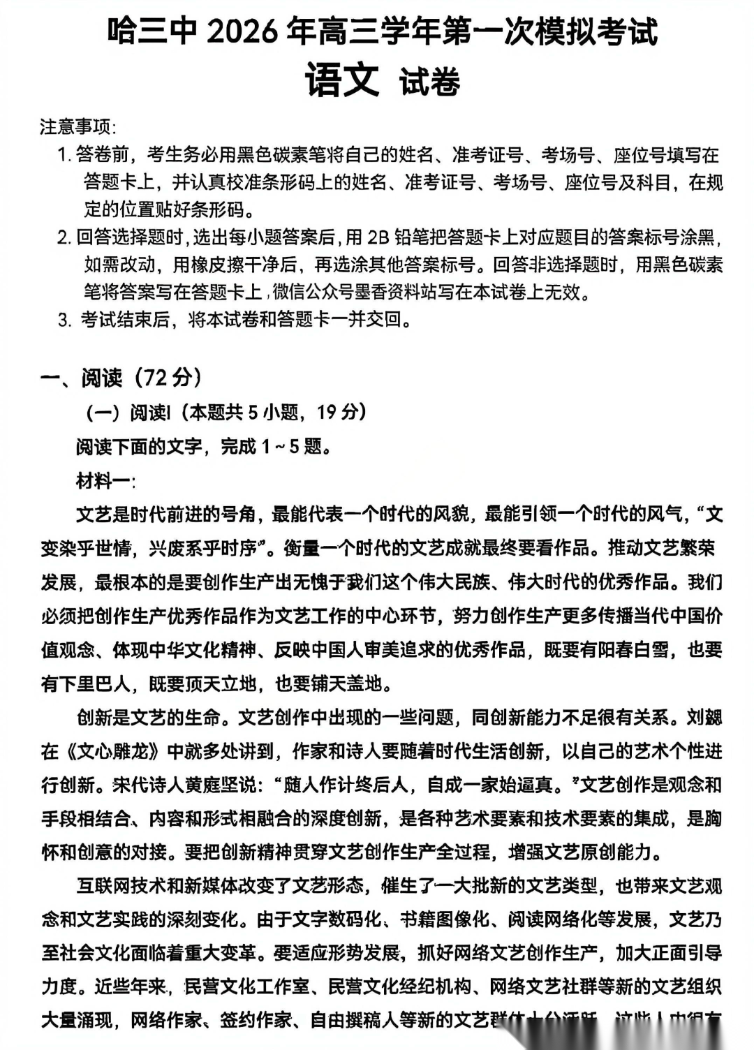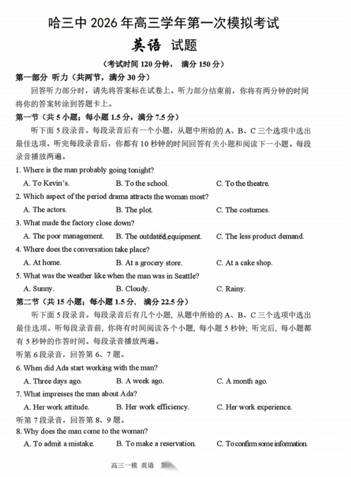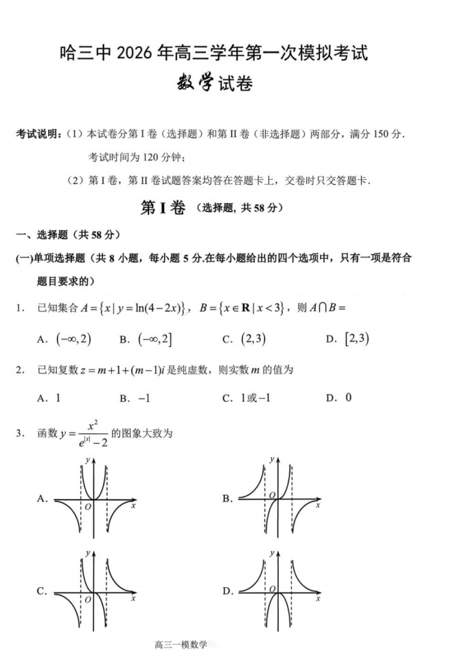 【百强校】【黑吉辽蒙卷】哈尔滨第三中学2026年高三学年第一次模拟考试(哈三中一模)(3.4-3.5) 全科试卷+答案