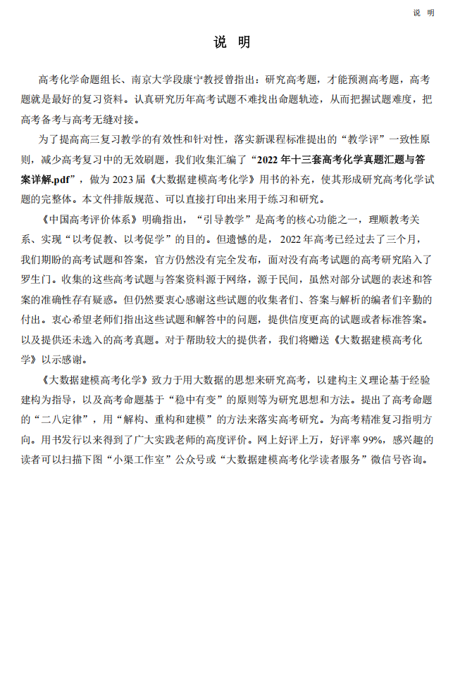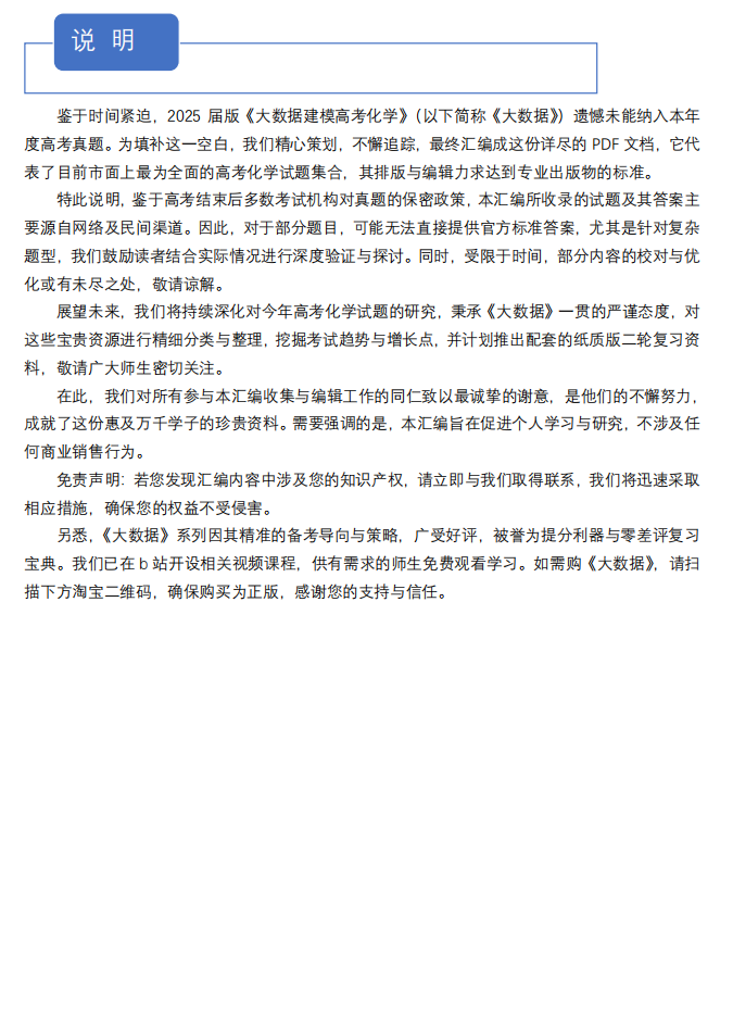 【高考化学】【大数据建模】2025届版《大数据建模高考化学》(高考化学真题汇编与答案详解)(193页)+2023届版(166页)(完整版)