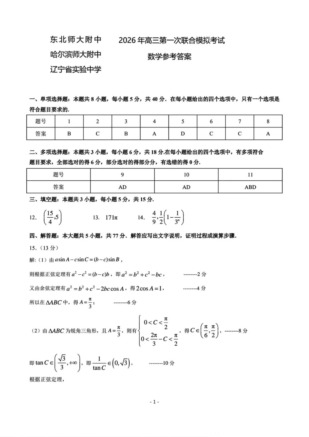 【全科】2026届东北三省三校(哈师大附中、东北师大附中、辽宁实验)高三下学期一模