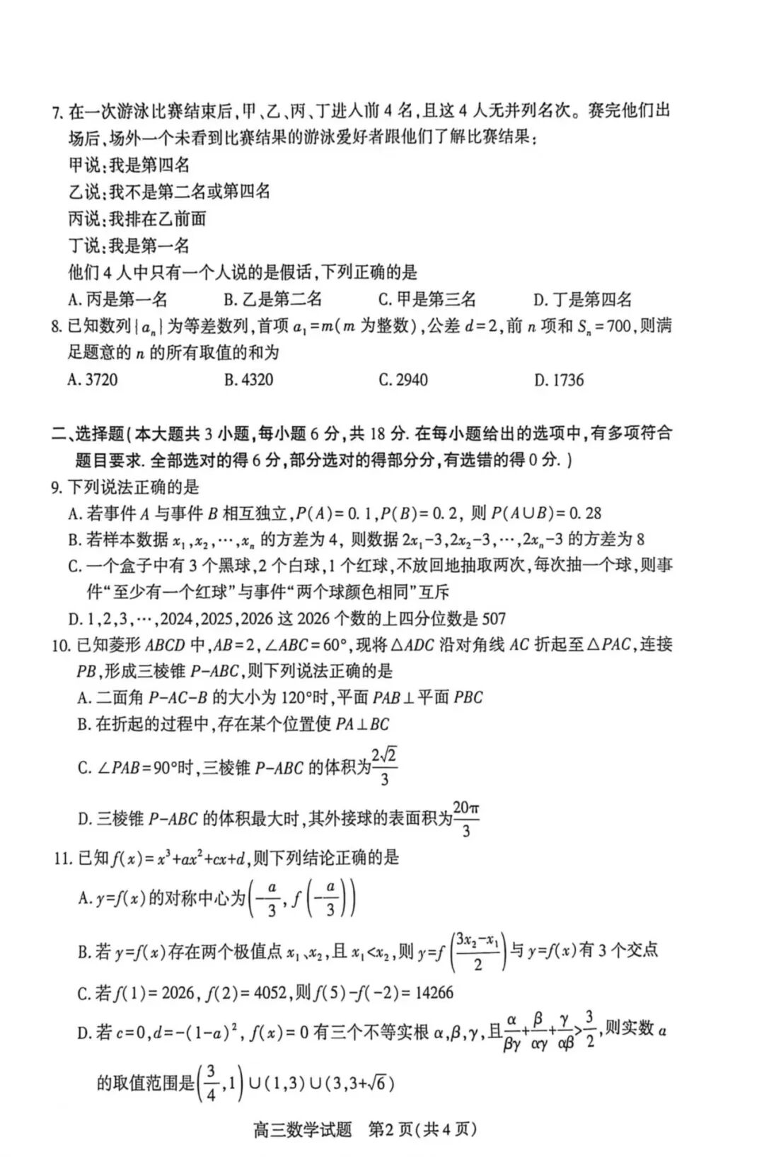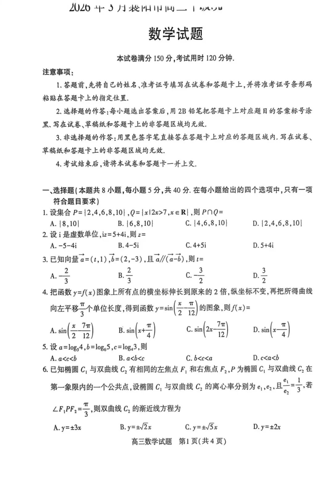 【襄阳一模答案】2026年3月襄阳市高三年级统一调研测试数学试卷及自做答案!仅供参考