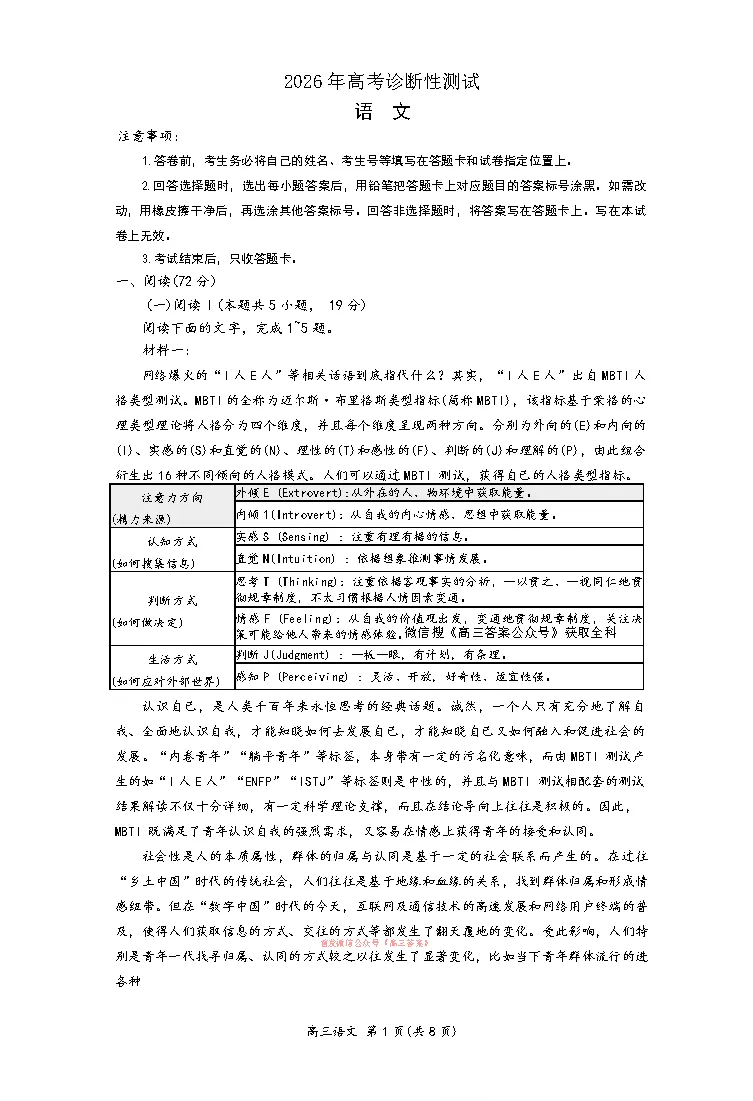 【大同一模自做】大同市2026届高三年级第一次模拟考试质量监测试卷及小编整理答案!仅供参考 【大同一模自做】大同市2026届高三年级第一次模拟考试质量监测试卷及小编整理答案!仅供参考