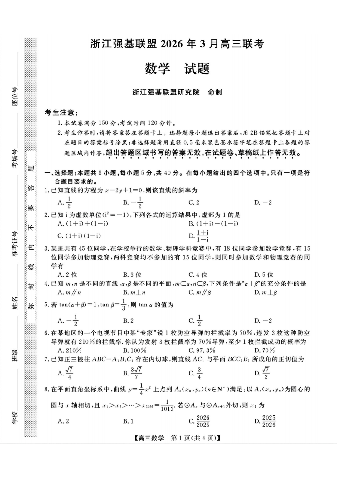 2026届浙江名校协作体G12联盟高三二模下载 2026届浙江名校协作体G12联盟高三二模下载