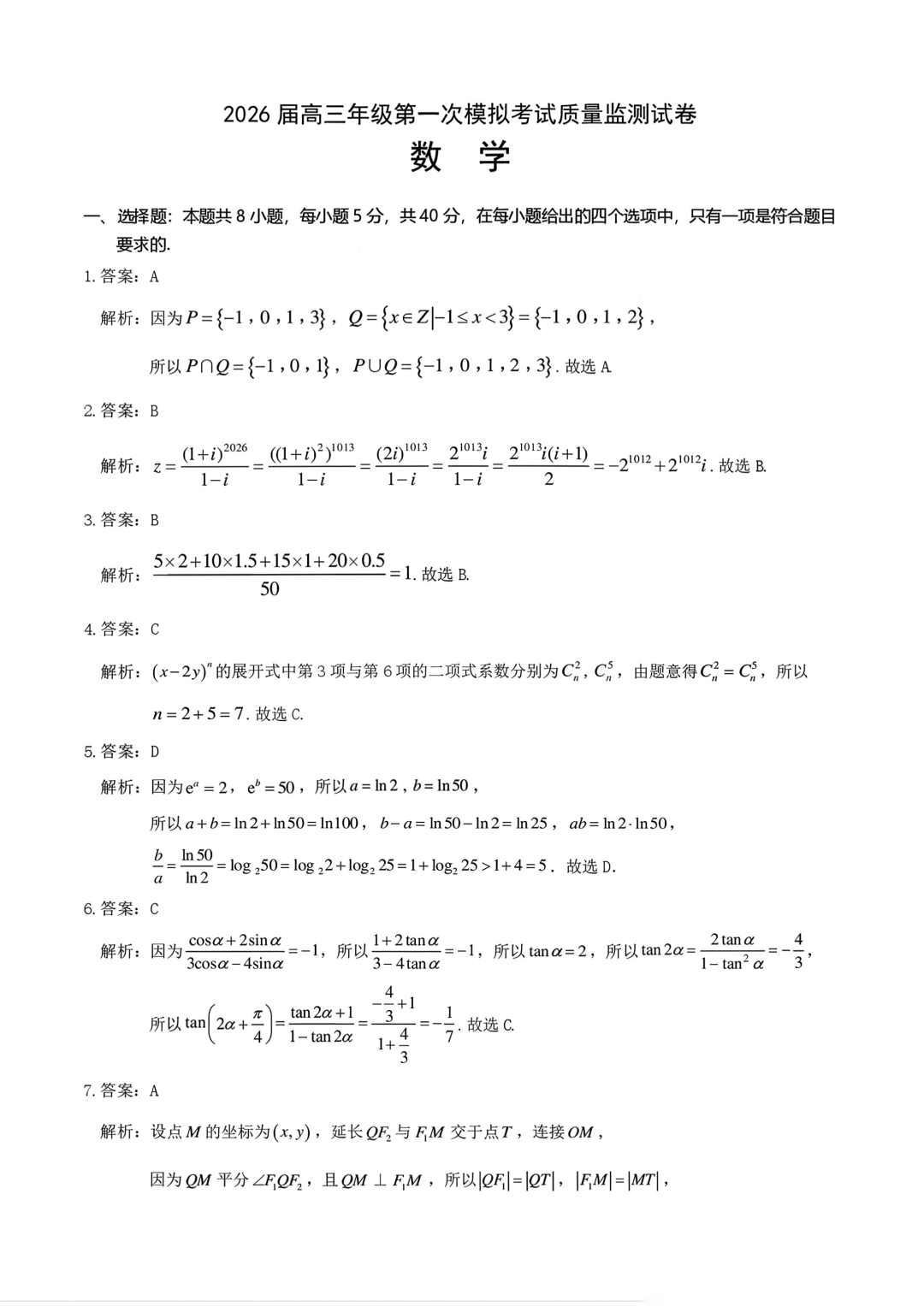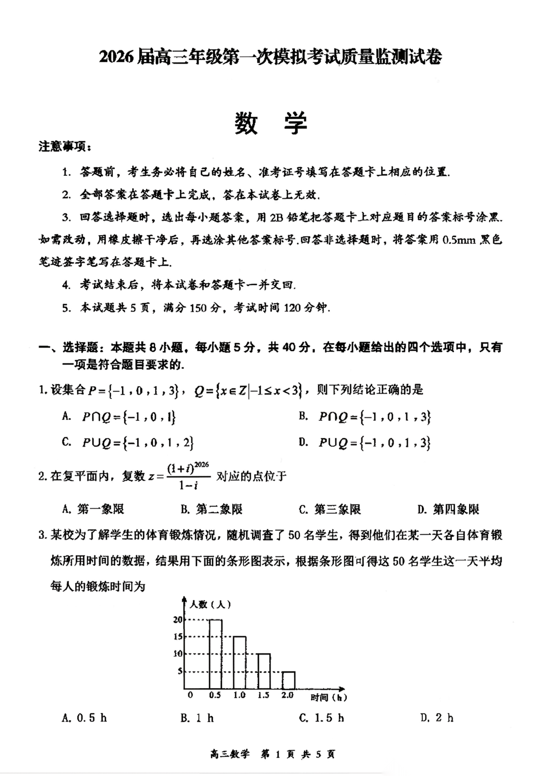 【大同一模全科】2026届大同市高三年级第一次模拟考试质量监测