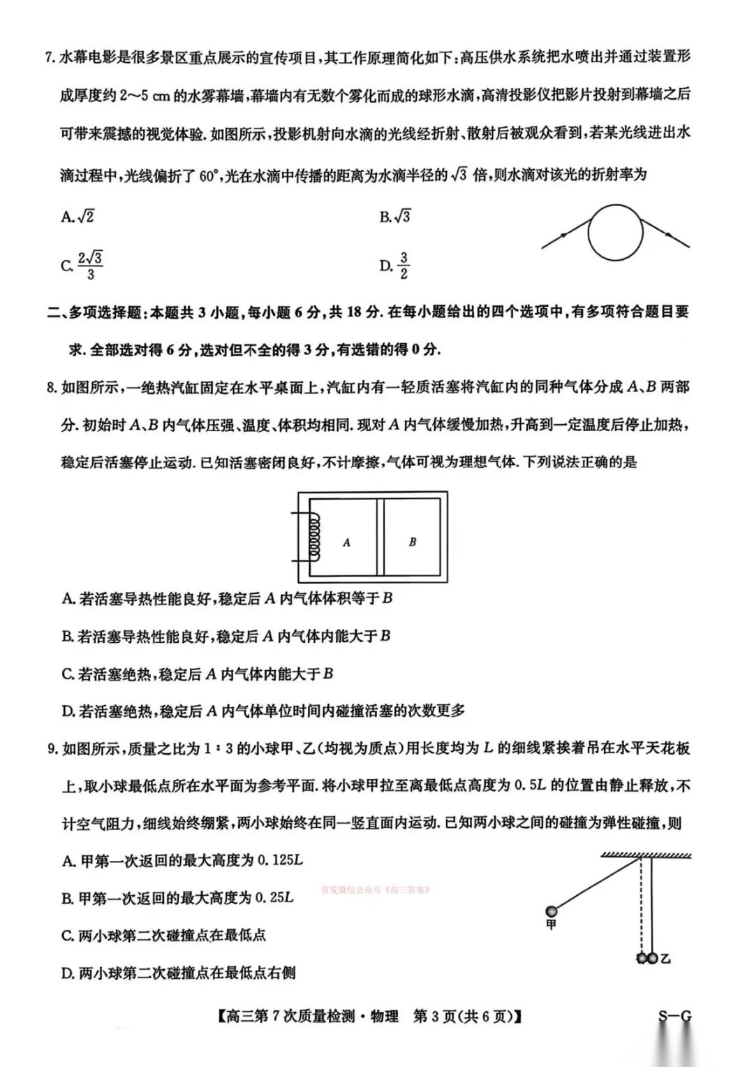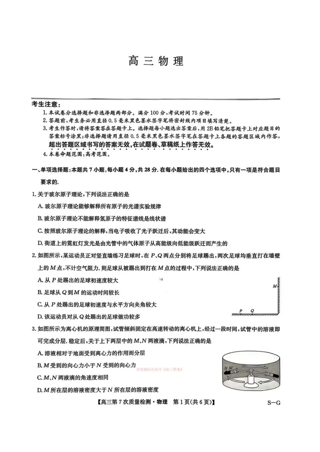 【超清无水印】:高三,2026九师联盟高三第7次质量检测
