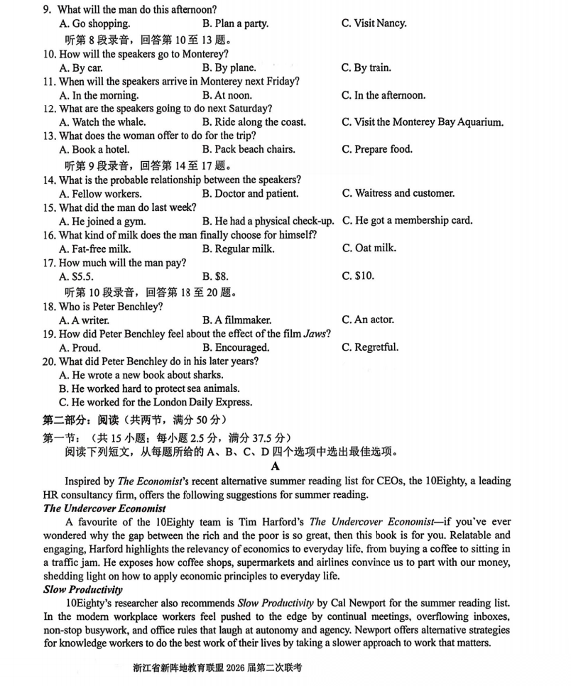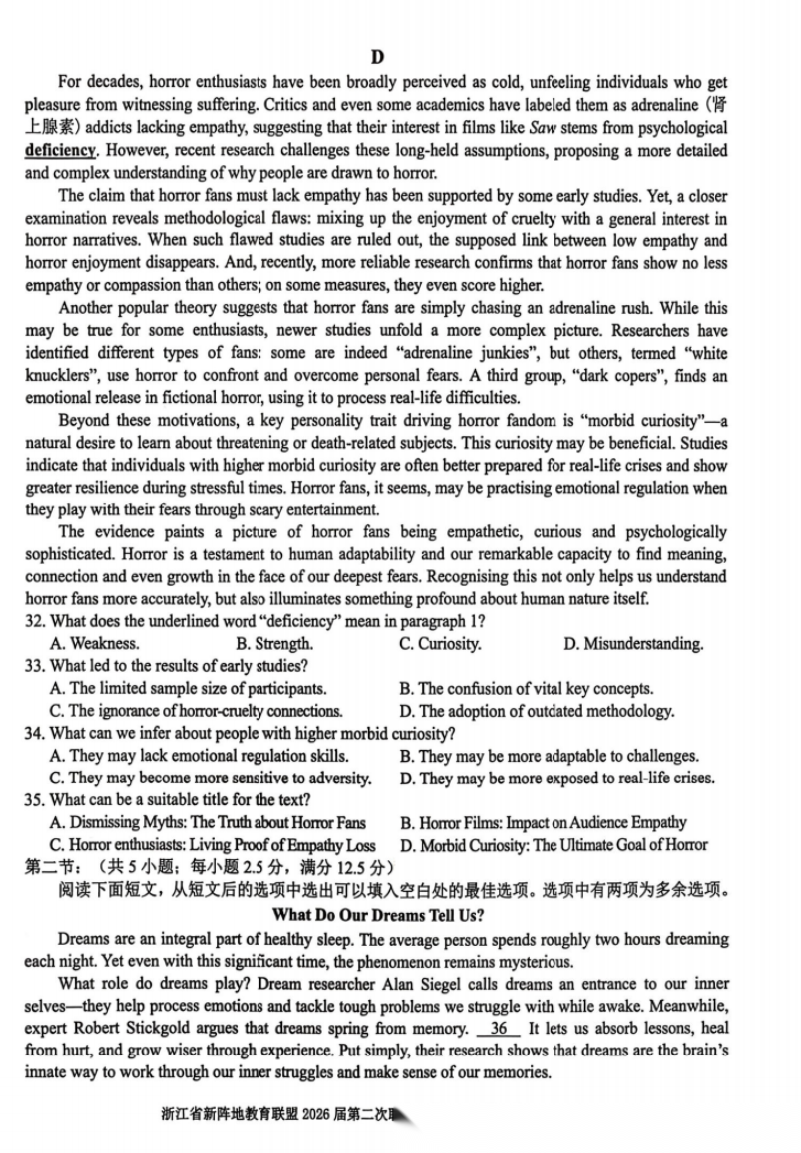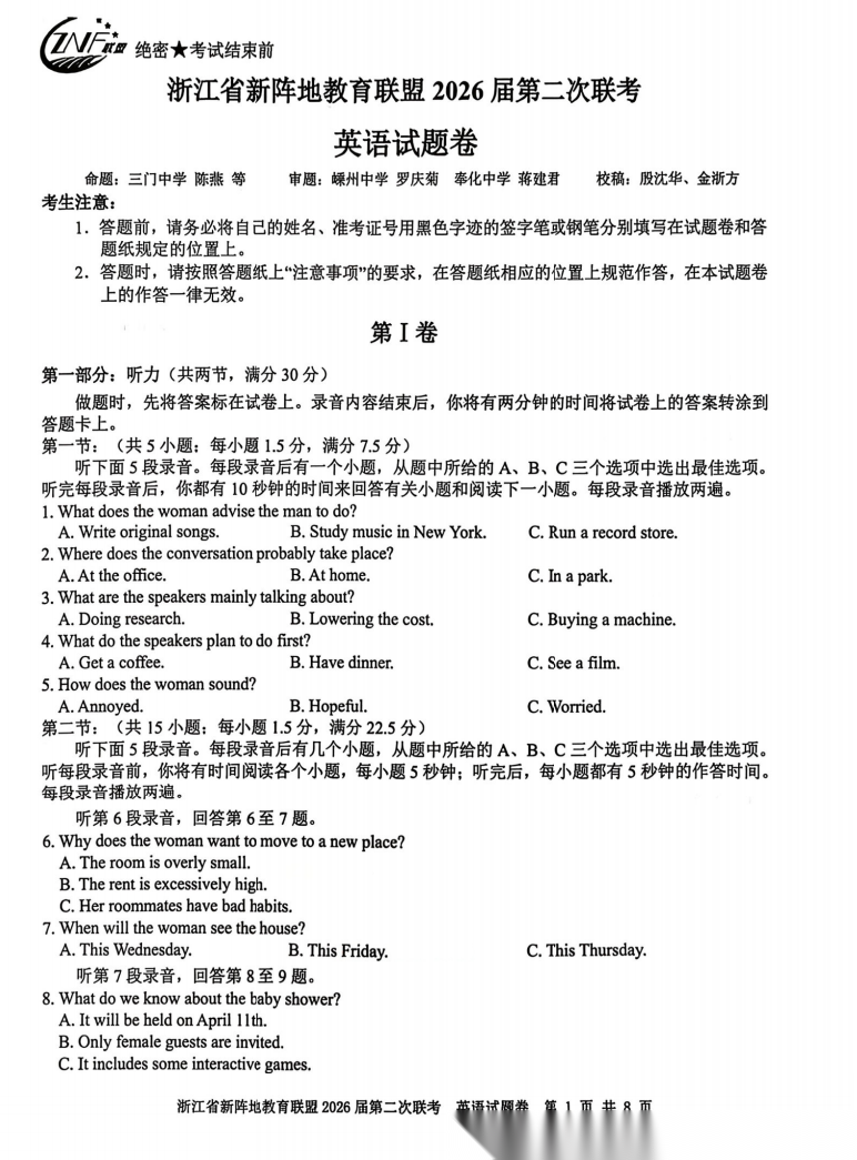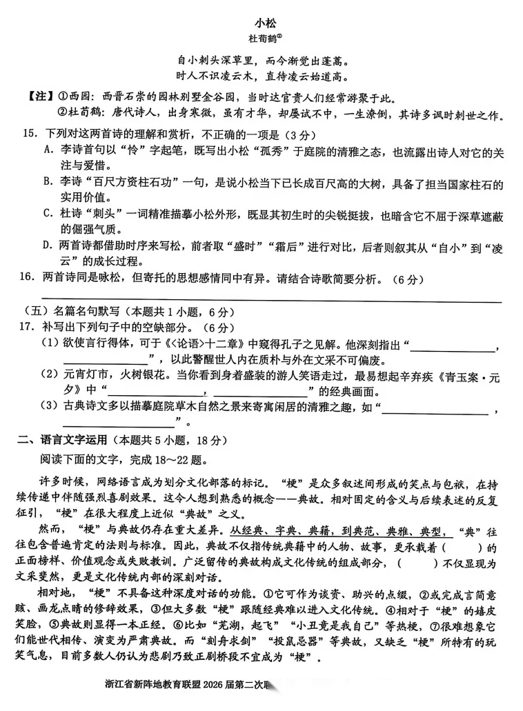 【超清无水印】:高三,浙江省新阵地教育联盟2026届高三第二次联考 【超清无水印】:高三,浙江省新阵地教育联盟2026届高三第二次联考